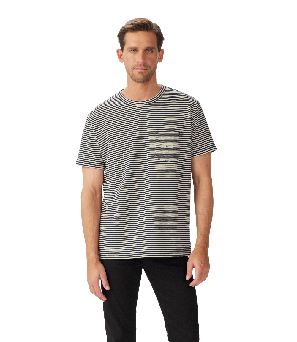 R.M.Williams Mens Stanley Stripe S/S Tee (KD211JE56) Sand/Navy M