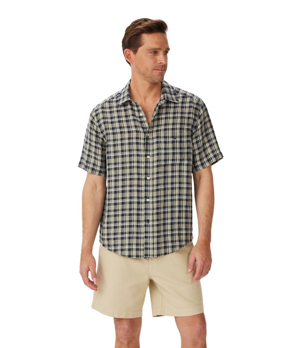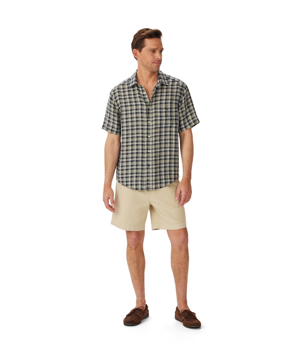 Warm weather dressing is made easy with this relaxed short sleeve shirt, crafted from premium French linen and finished with a chest pocket and contrast Longhorn embroidery.