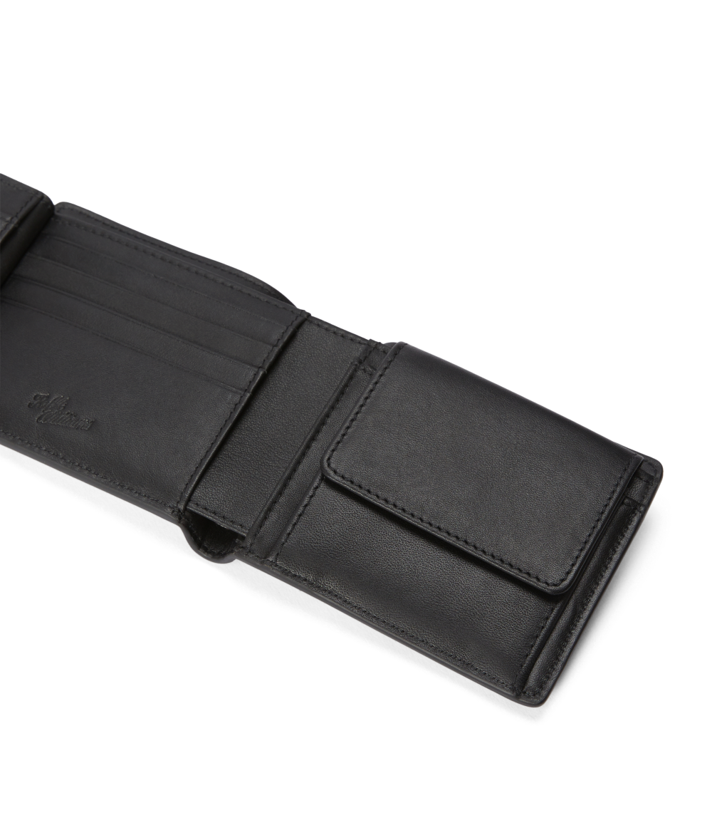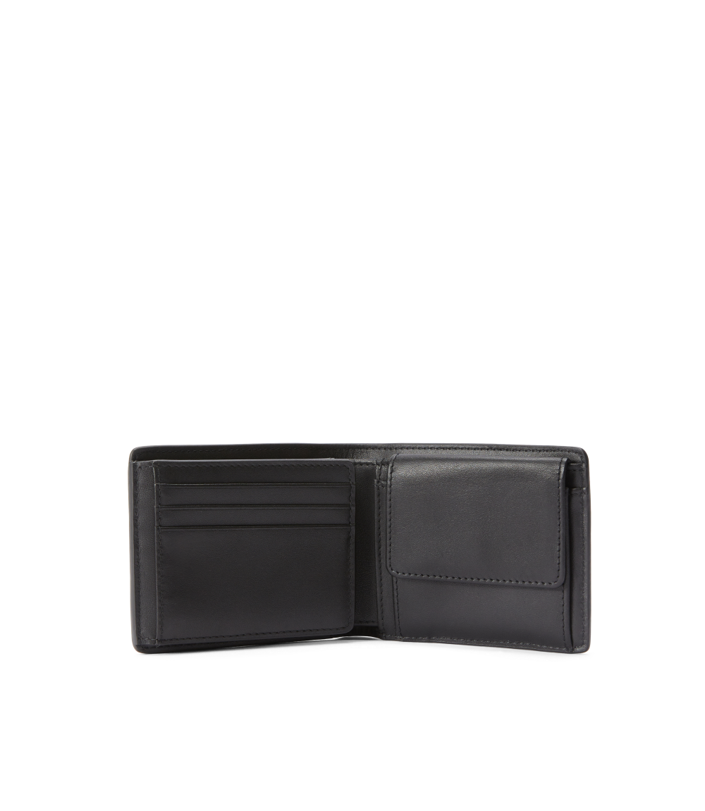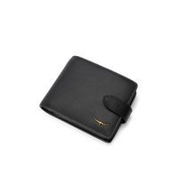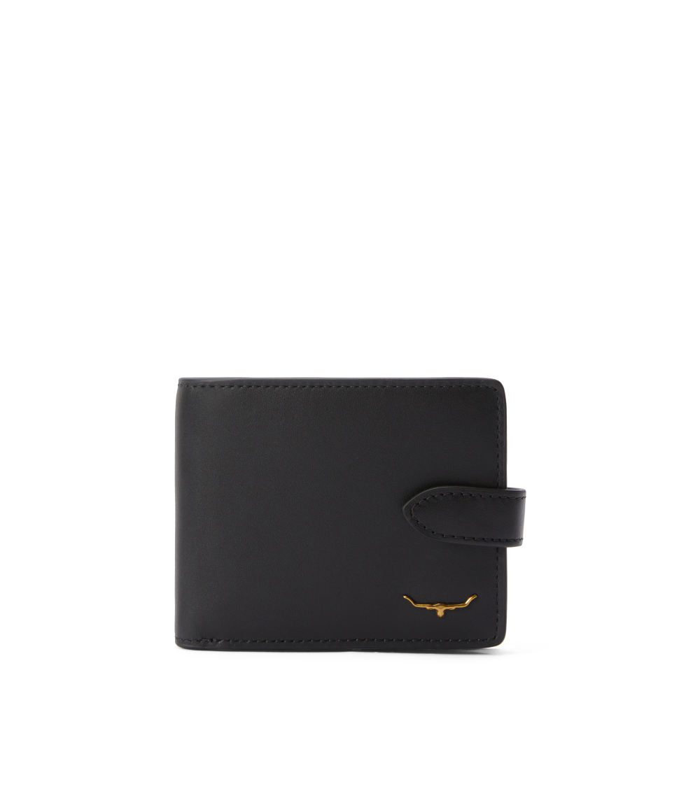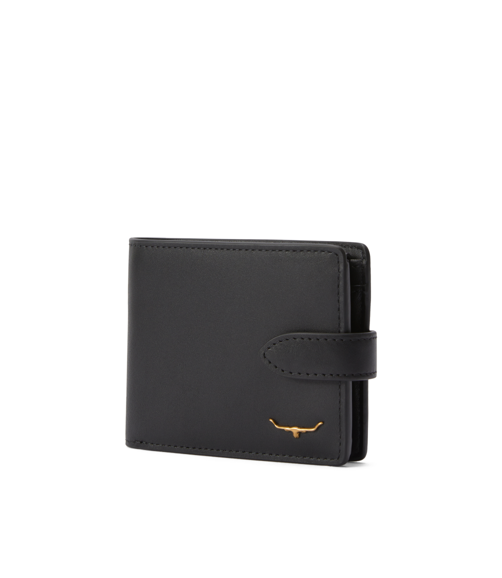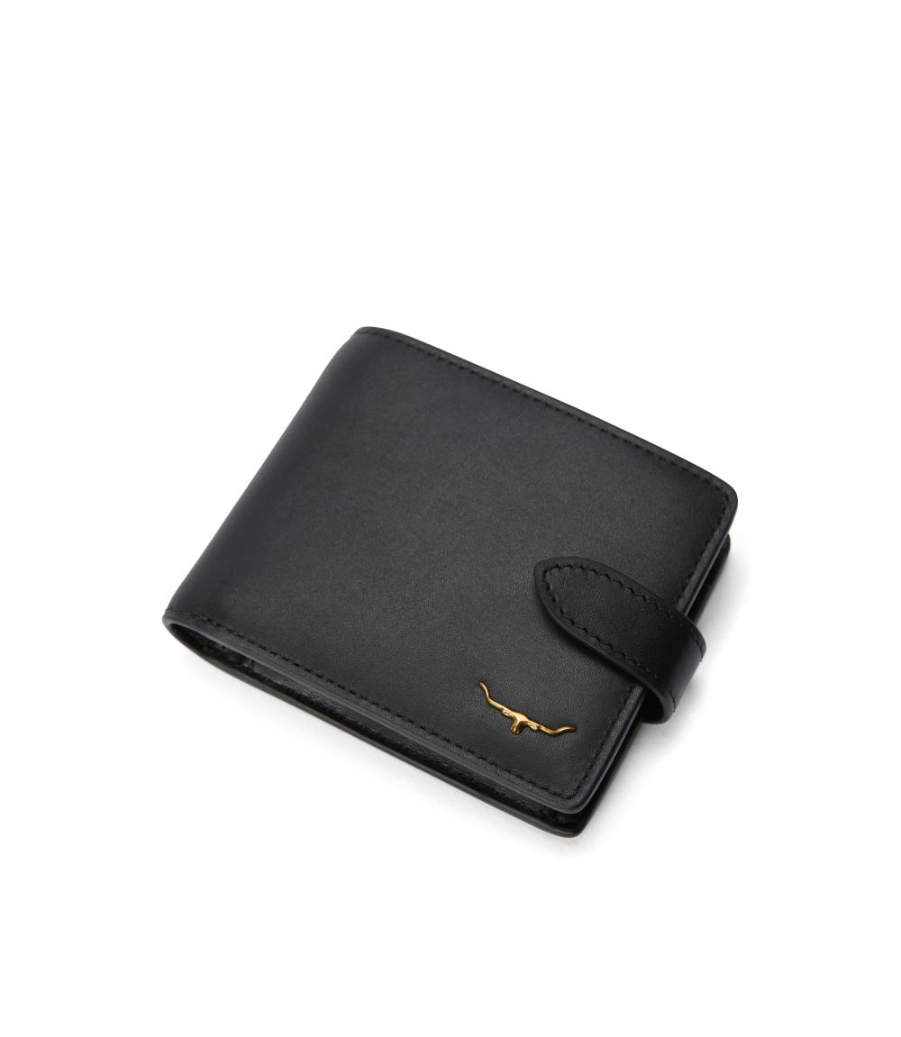 The wallet with pocket and tab features a diverse range of compartments for cards, notes and coins, as well as a tab with press-stud closure, for added security.