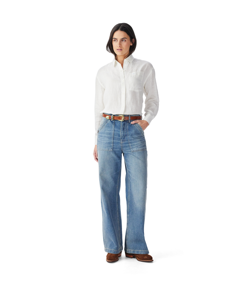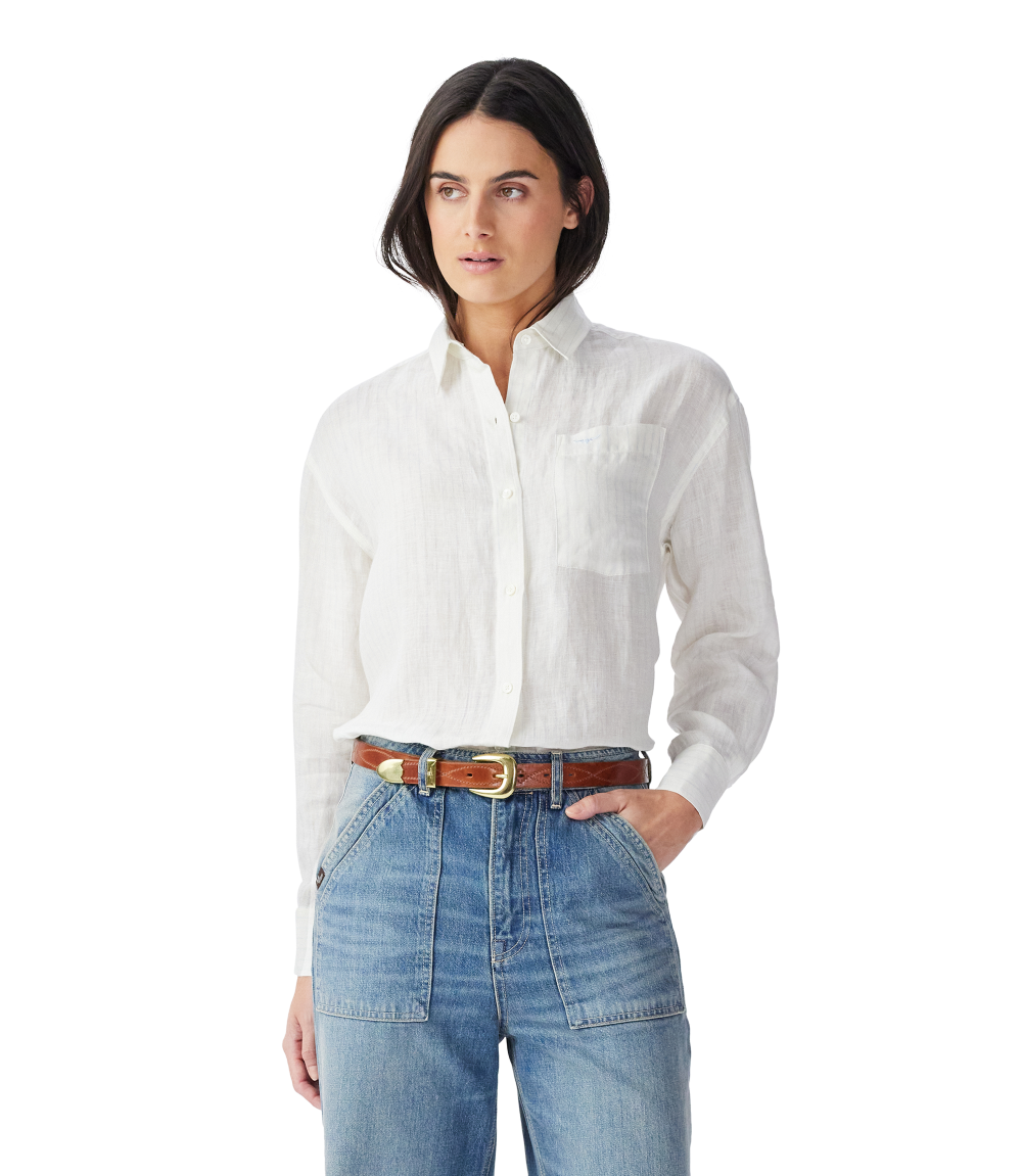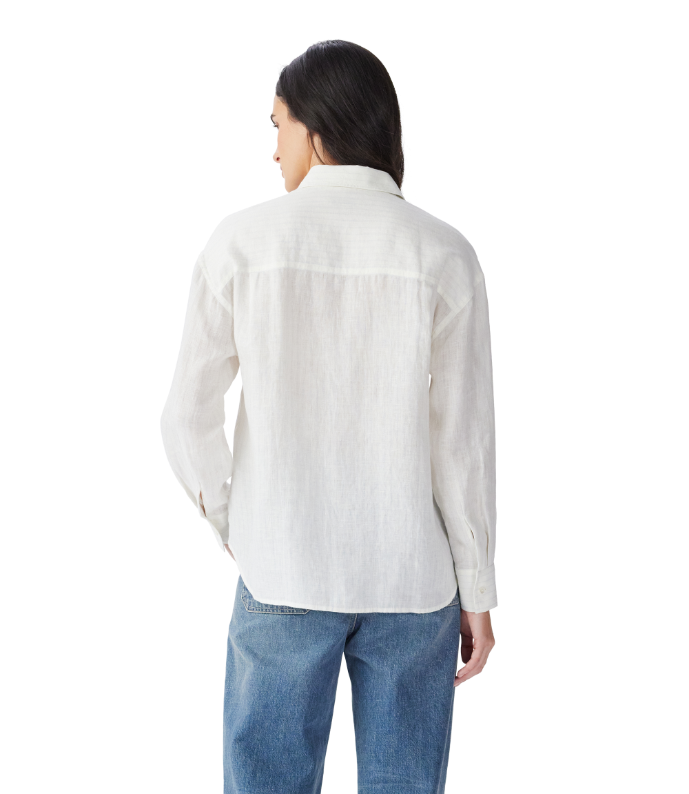 Crafted from French linen, this relaxed-fit shirt features a regular collar, front placket with contrast buttons, full-length sleeves with single-button cuffs and subtle branded embroidery.