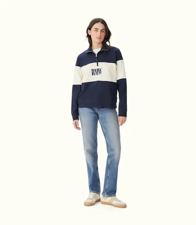 R.M.Williams Womens Trickett Panel 1/4 Zip Jumper (KZ800RJ01) Navy Ivory S