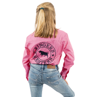 Ringers Western Childrens Jackaroo Full Button L/S Workshirt (321012RW) Pastel Pink/Navy Embroidery 2