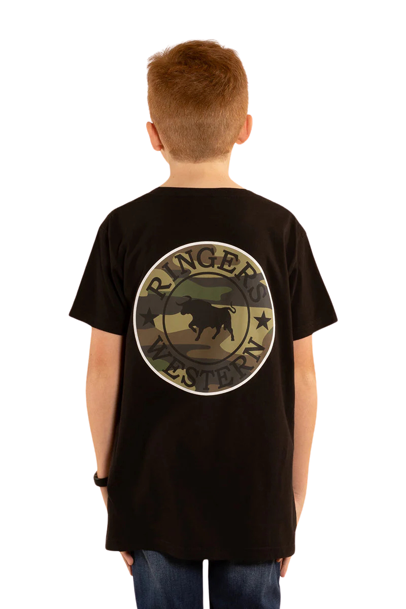 Ringers Western Childrens Signature Bull Classic S/S Tee (320004RW) Black/Camo 2