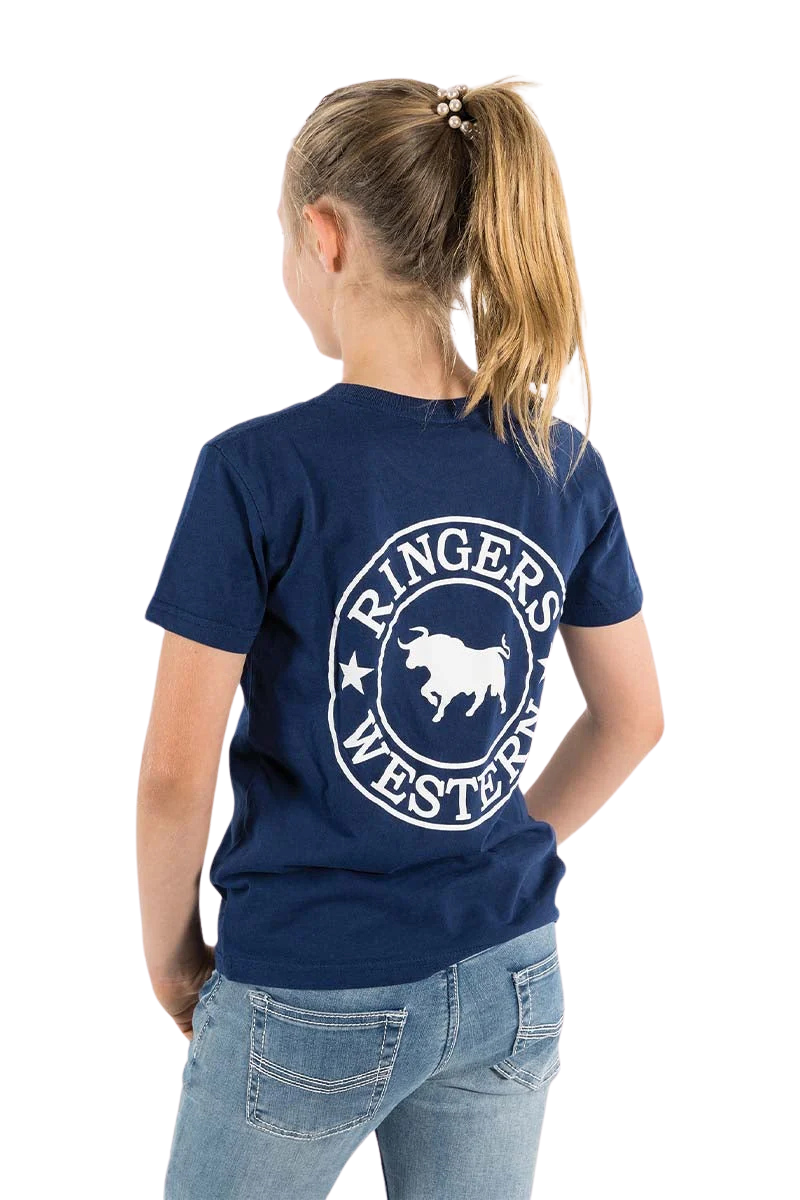 Ringers Western Childrens Signature Bull Classic S/S Tee (320004RW) Navy with White Print 2