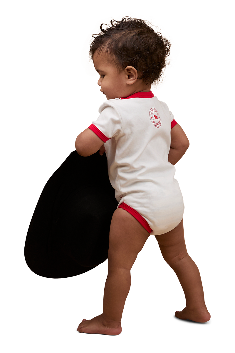 Created from 100% premium cotton, this delightful romper offers superior softness and breathability, keeping little cowboys and cowgirls cool and comfortable in genuine country style. The relaxed fitting design features thoughtful snap button closures at the shoulder and crotch, making unexpected outfit and nappy changes a breeze. Contrast binding is complemented by a fun and cheeky front print that will ensure bub's first rodeo is one to remember.