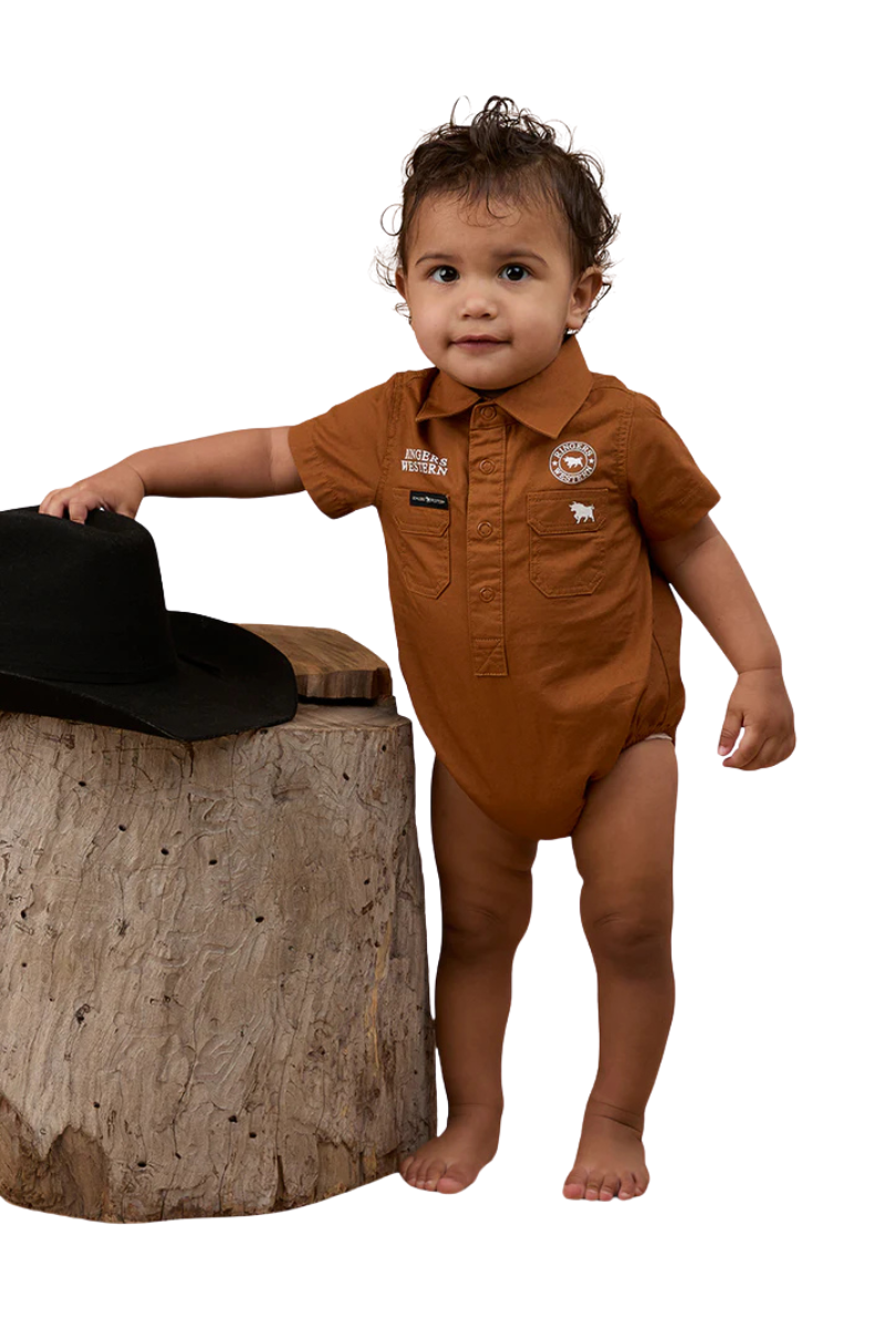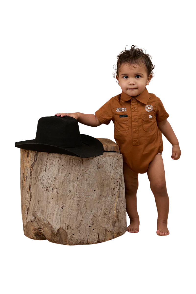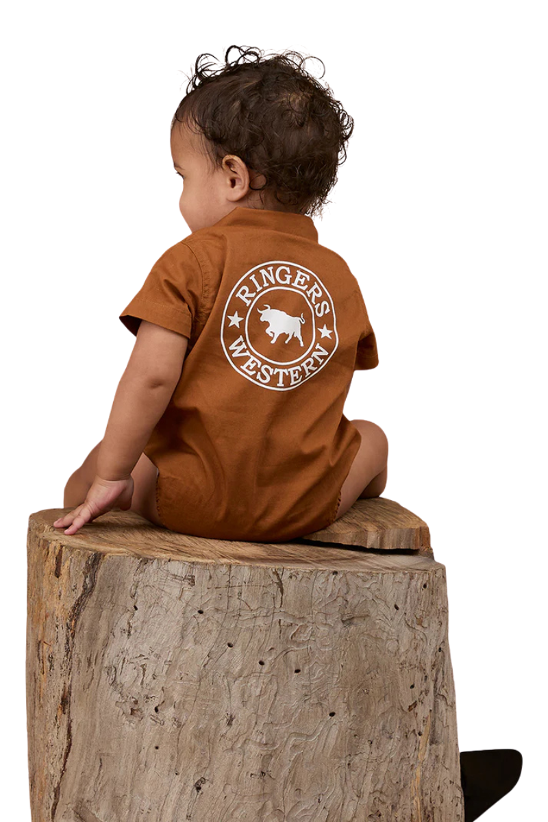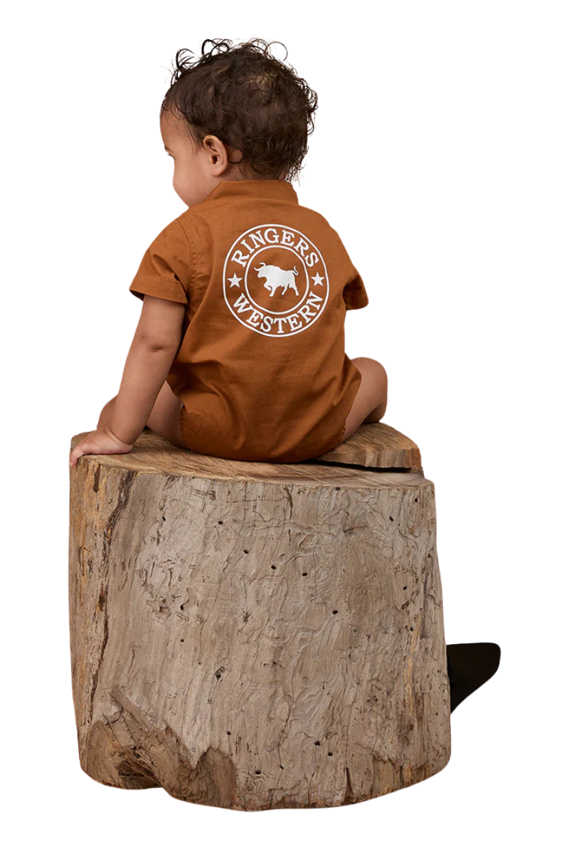 Ringers Western Infants S/S Work Shirt Romper (523002RW) Tobacco/White 00