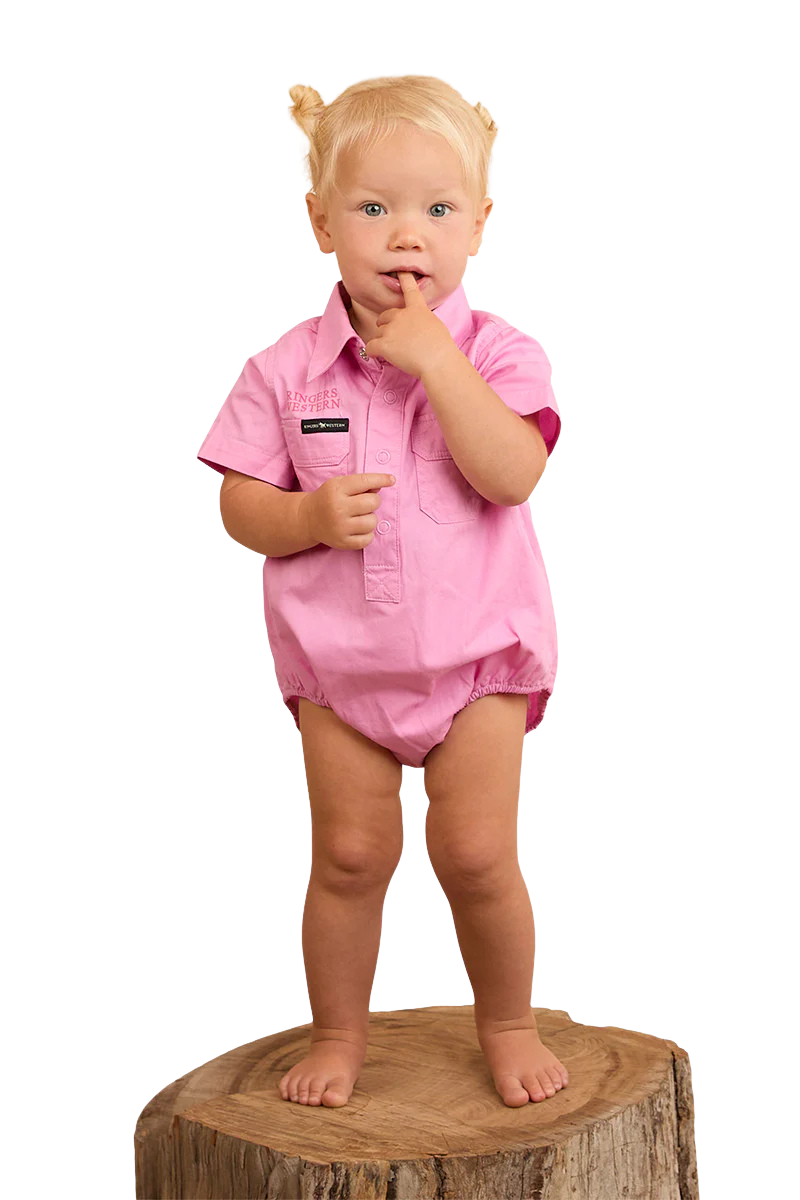 Ringers Western Infants S/S Workshirt Romper (523002RW) Pastel Pink 00