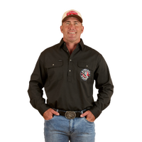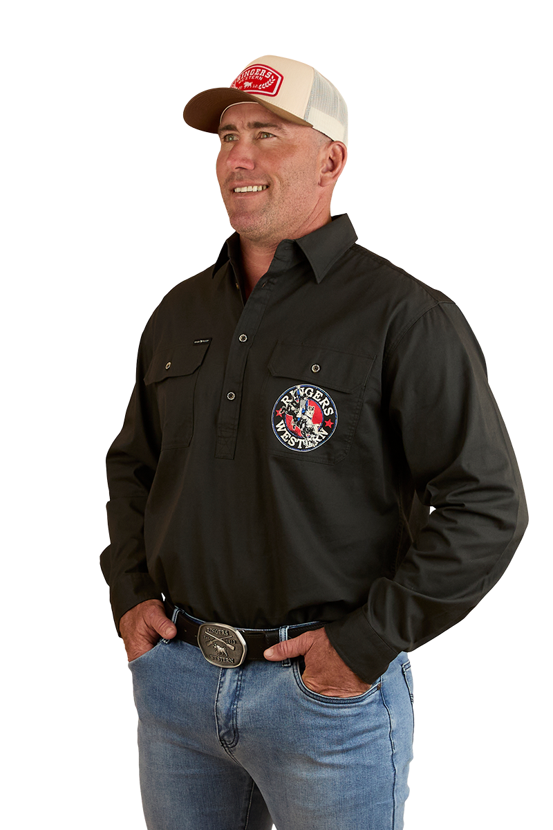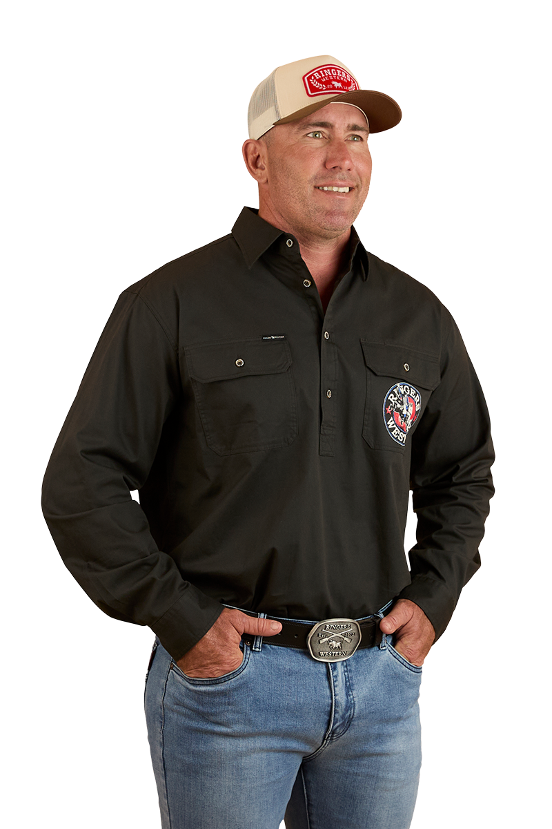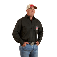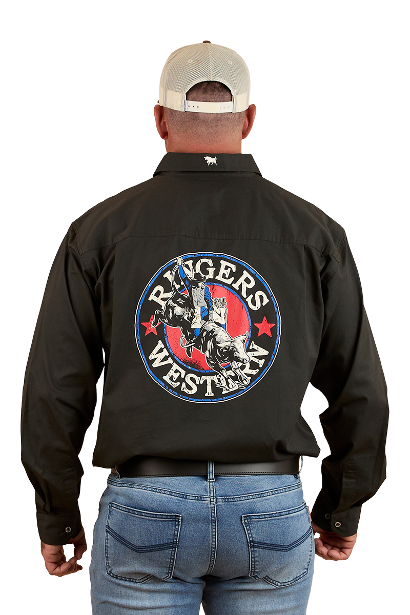 Ringers Western Mens 8 Seconds Half Button L/S Shirt (124093RW) Charcoal S