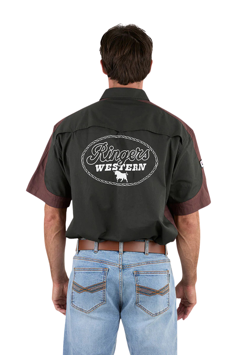 Designed for practicality without compromising style, the Back Roads shirt features dual chest pockets, a pen holder, and a zippered stash pocket, making it ideal for work or weekend adventures. Contrast colour detailing, multiple Ringers Western patches and embroidery, and a bold large back print bring a touch of vintage western flair. Layer over a tank or pair with your favourite Ringers jeans or work shorts for effortless versatility.