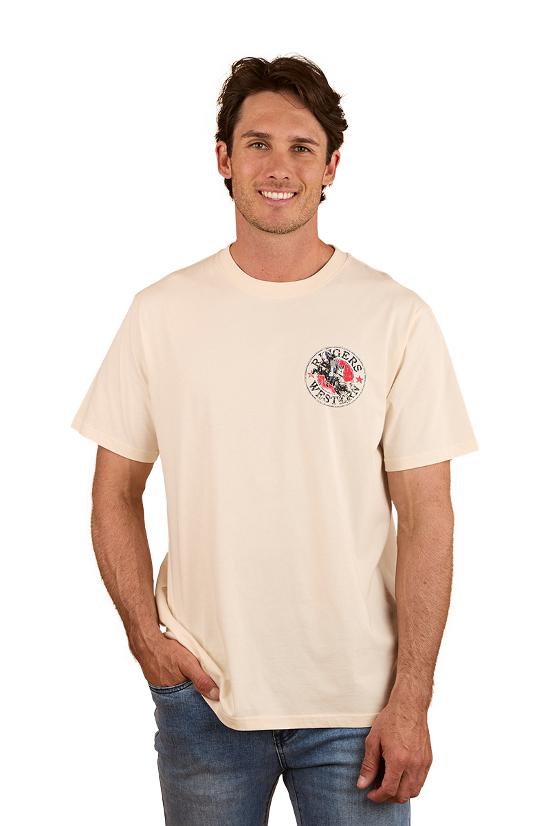 Ringers Western Mens Bucking Bull Loose Fit S/S Tee (124069RW) Off White XS