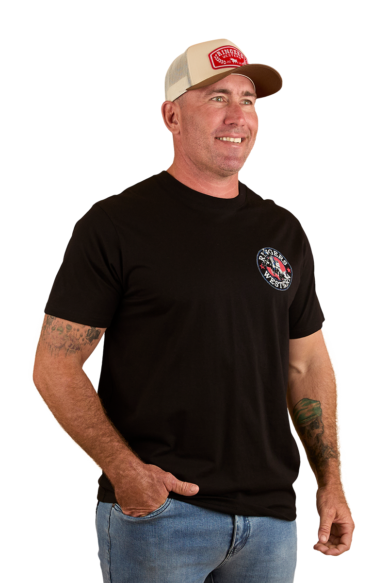 Ringers Western Mens Bucking Bull Loose Fit S/S Tee (124069RW) Black S