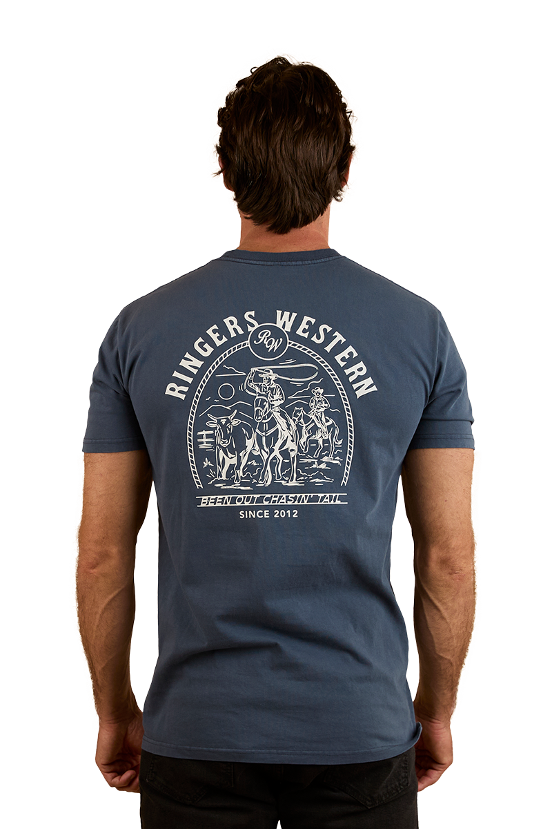 Ringers Western Mens Chasin' Tail S/S Tee (124075RW) Washed Navy XL [SD]