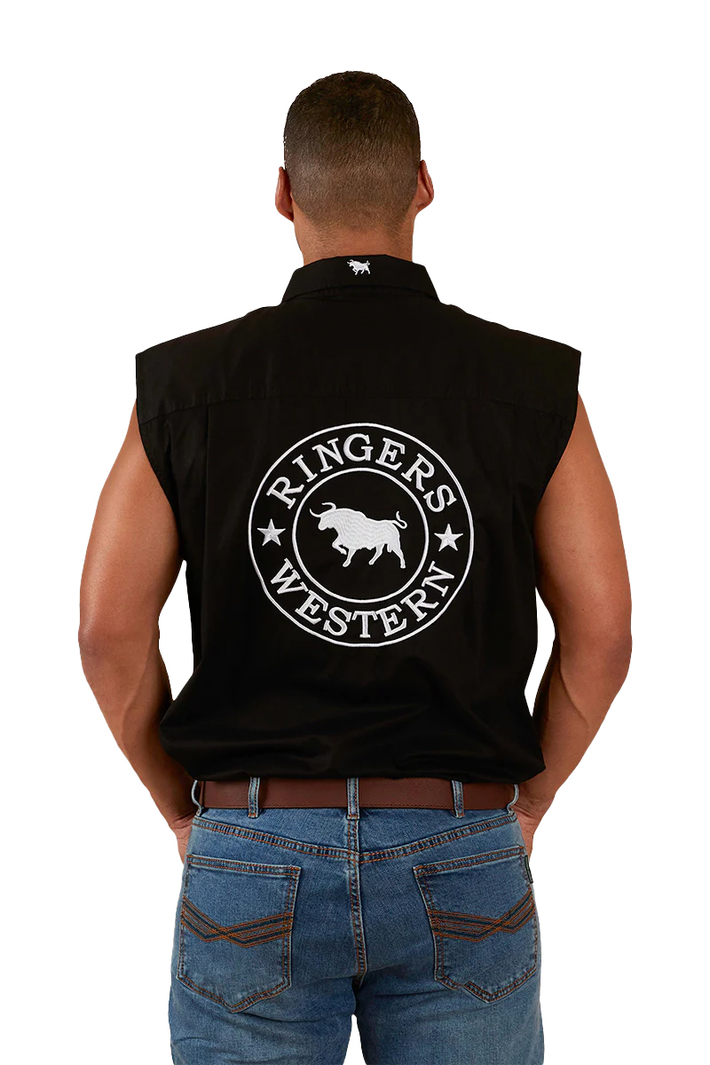 Ringers Western Mens Hawkeye Sleeveless Work Shirt (120210991) Black with White Embroidery M