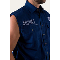 Ringers Western Mens Hawkeye Sleeveless Work Shirt (120210991) Navy with White Embroidery 3XL