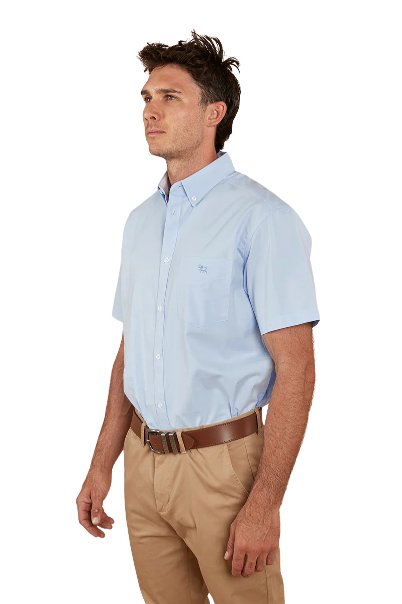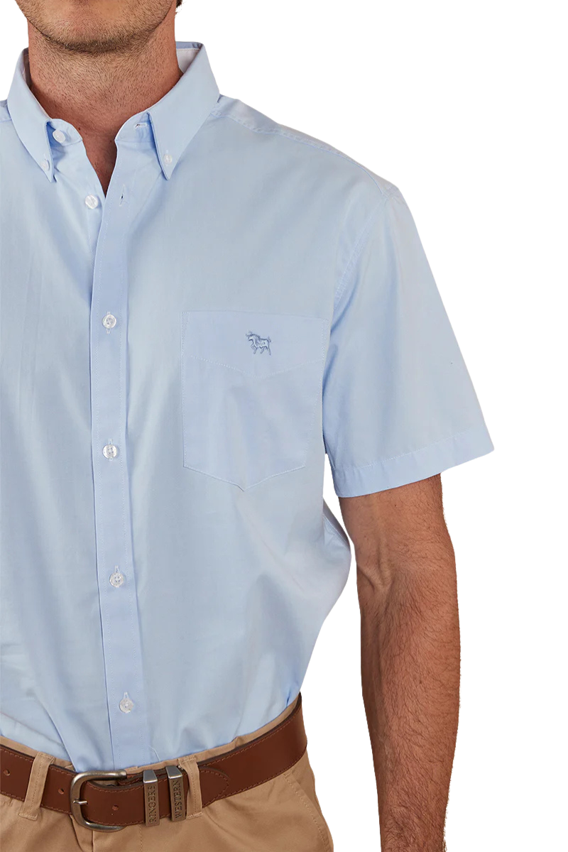 The Heritage Dress Shirt is now available in a short sleeve style. Made with soft and lightweight material, this understated and classic style is a must for smart-casual and corporate wear. This shirt features a small bull embroidered logo on the chest pocket and a spare button that is attached to the interior label.