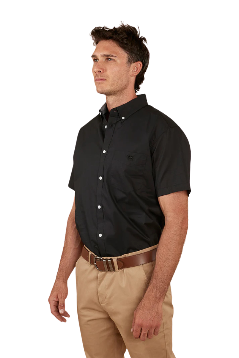 The Heritage Dress Shirt is now available in a short sleeve style. Made with soft and lightweight material, this understated and classic style is a must for smart-casual and corporate wear. This shirt features a small bull embroidered logo on the chest pocket and a spare button that is attached to the interior label.