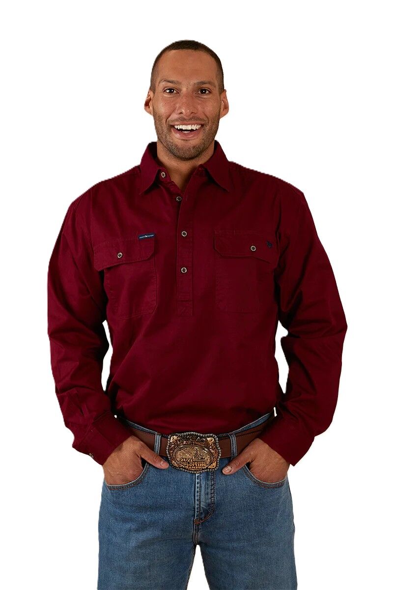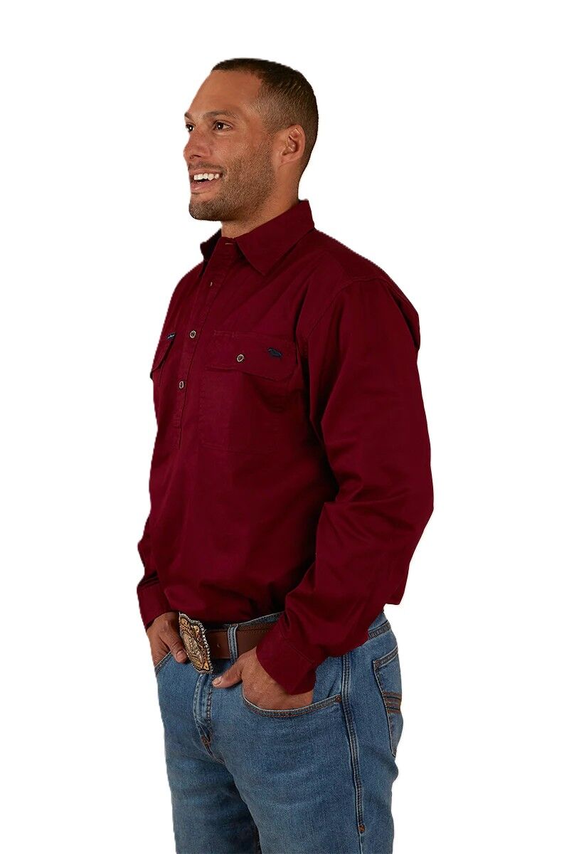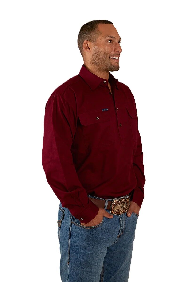 Ringers Western Mens King River Half Button Work Shirt (171110002) Burgundy S
