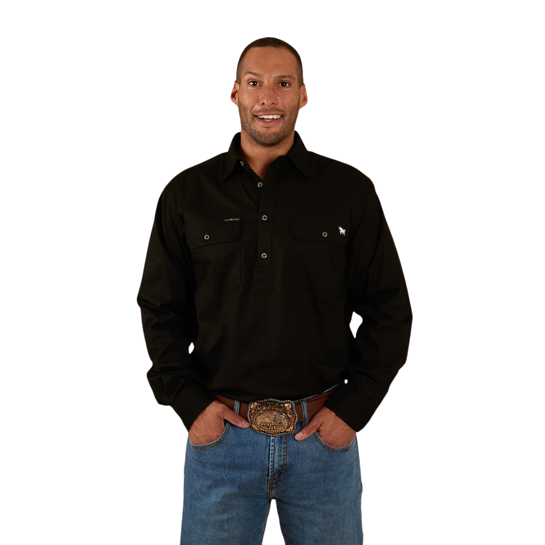 Ringers Western Mens King River L/S Half Button Workshirt (171110002) Black S
