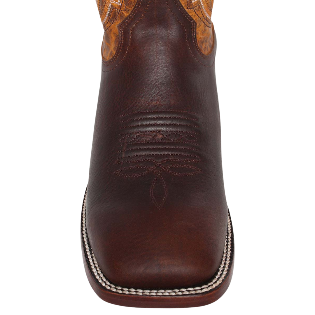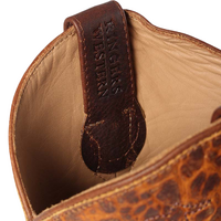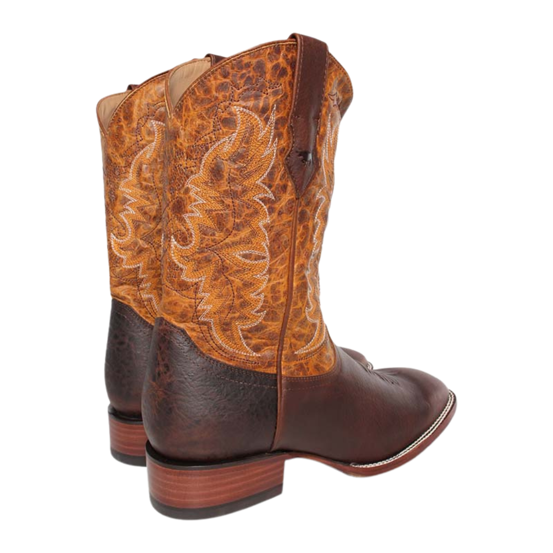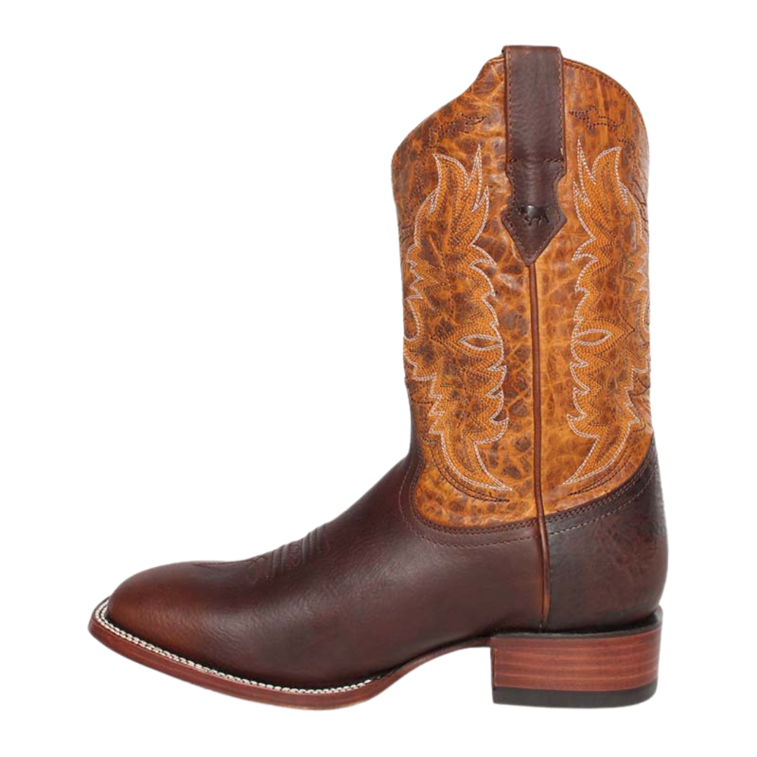 Built for riding, each pair is lasted, stitched, and tooled by hand to ensure absolute comfort and performance. This rugged square toe boot features a genuine leather foot under a distressed stitched 11" leather shaft. These boots are as durable and functional as they are striking with Easy-on pull tabs, leather linings, leather covered cushion insoles with double stitched welt construction, and smooth leather soles.
