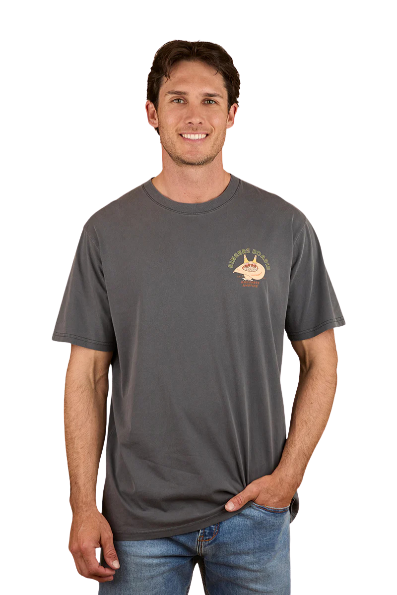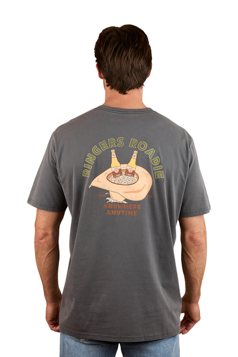 Let the good times roll in the Ringers Roadie Men’s Loose Fit T-Shirt — a soft, breathable and durable 100% cotton graphic tee made for long days, late nights and everything in between. The loose fit gives you extra room to move, making it perfect for roaming festival grounds, or kicking back with a cold one. Featuring a bold signature back graphic and a small chest print, this men’s western tee delivers effortless country style. The pre-shrunk fabric ensures reliable sizing wear after wear, while the classic crew neck makes it easy to pair with your favourite Ringers Western jeans or footy shorts.