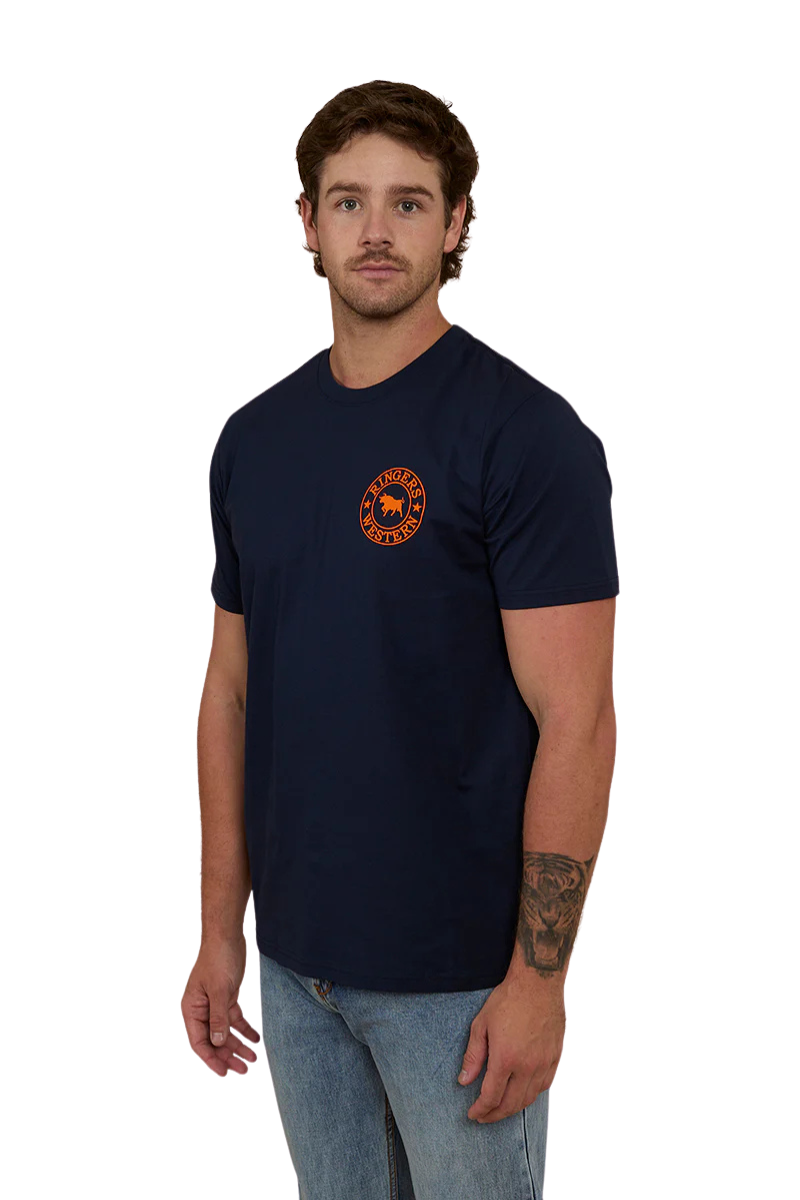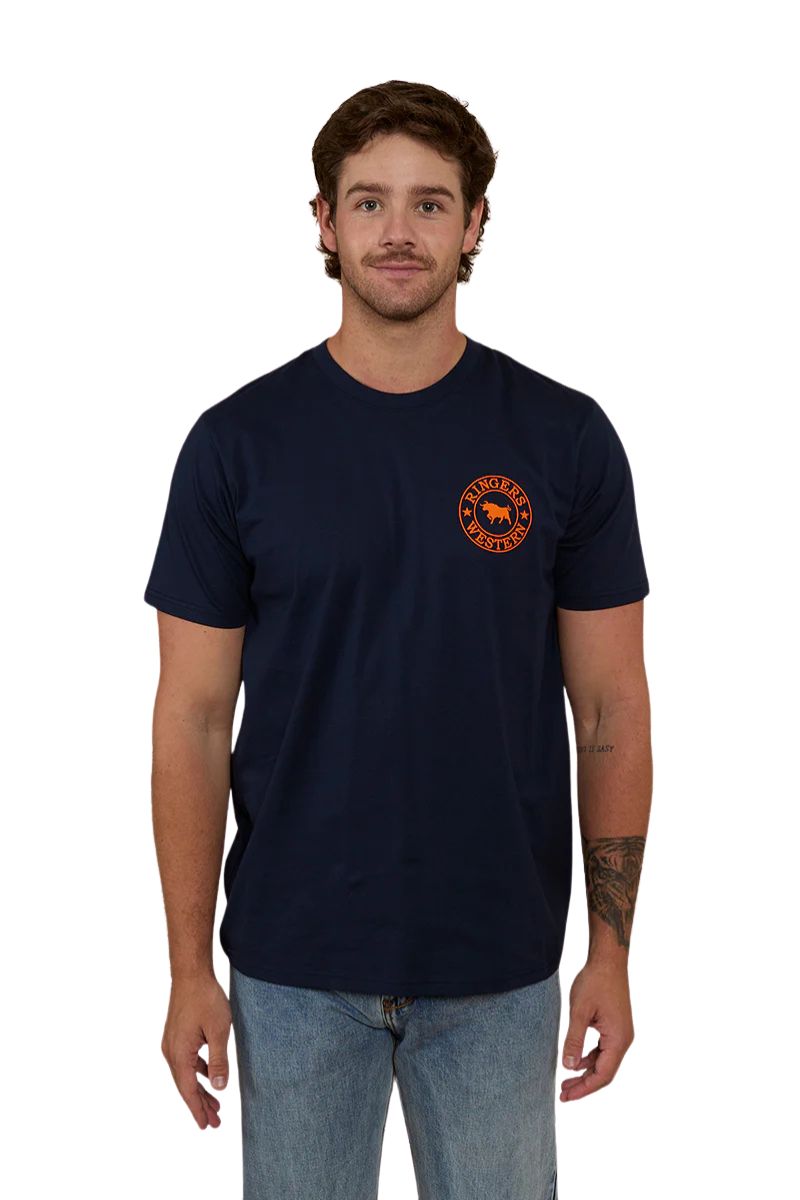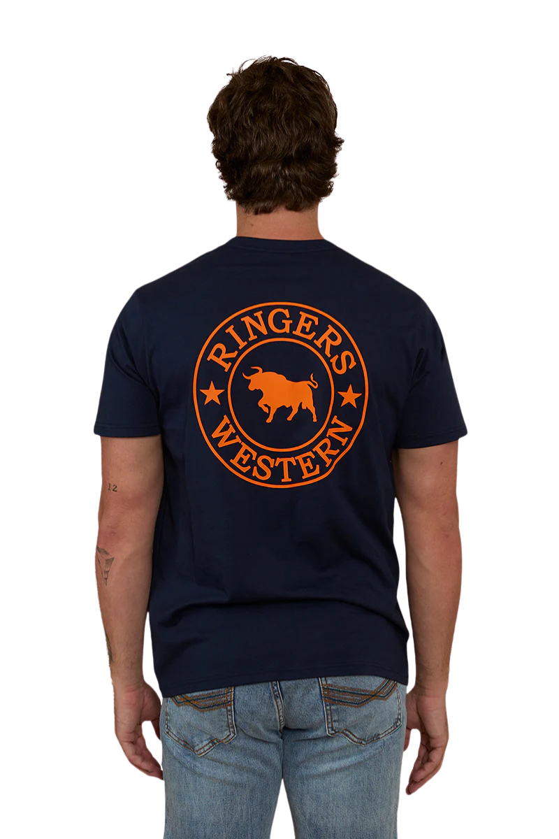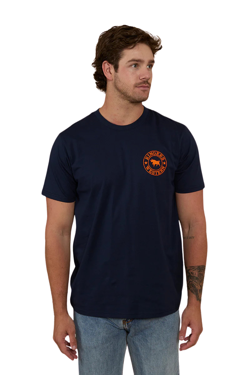 Ringers Western Mens Signature Bull Loose Fit S/S Tee (120201560) Navy/Orange S