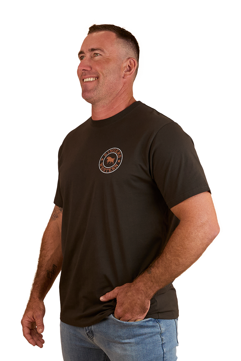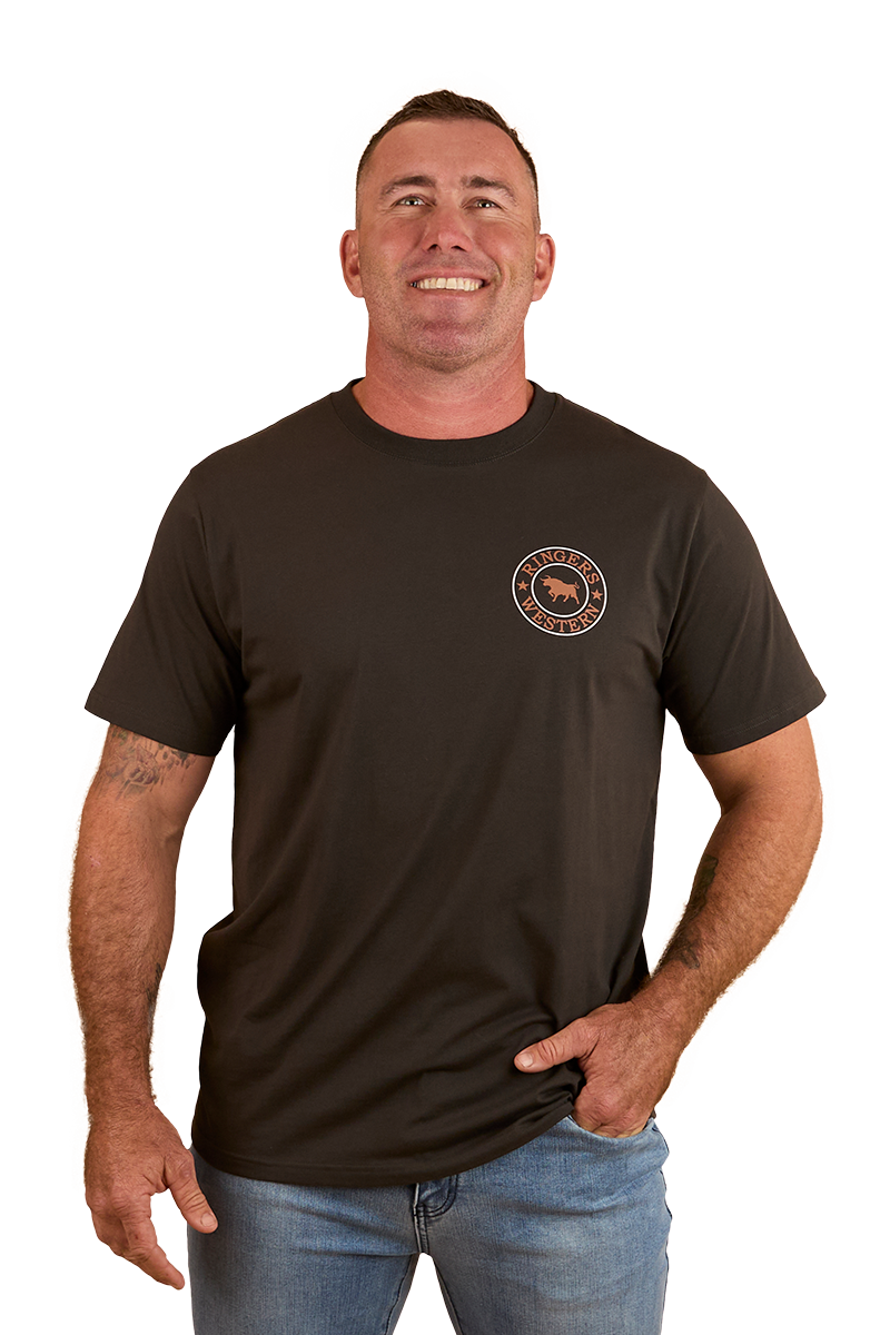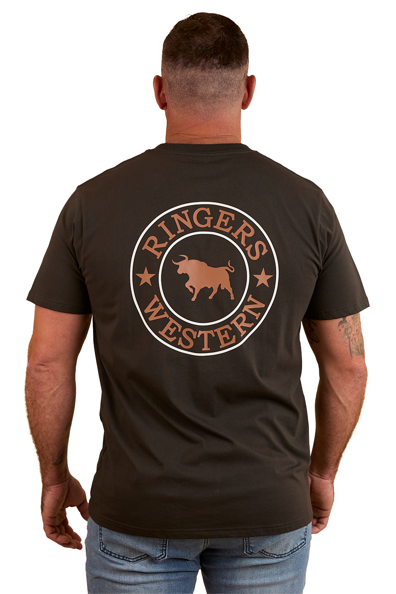 Ringers Western Mens Signature Bull Loose Fit S/S Tee (120201560) Charcoal/Copper S