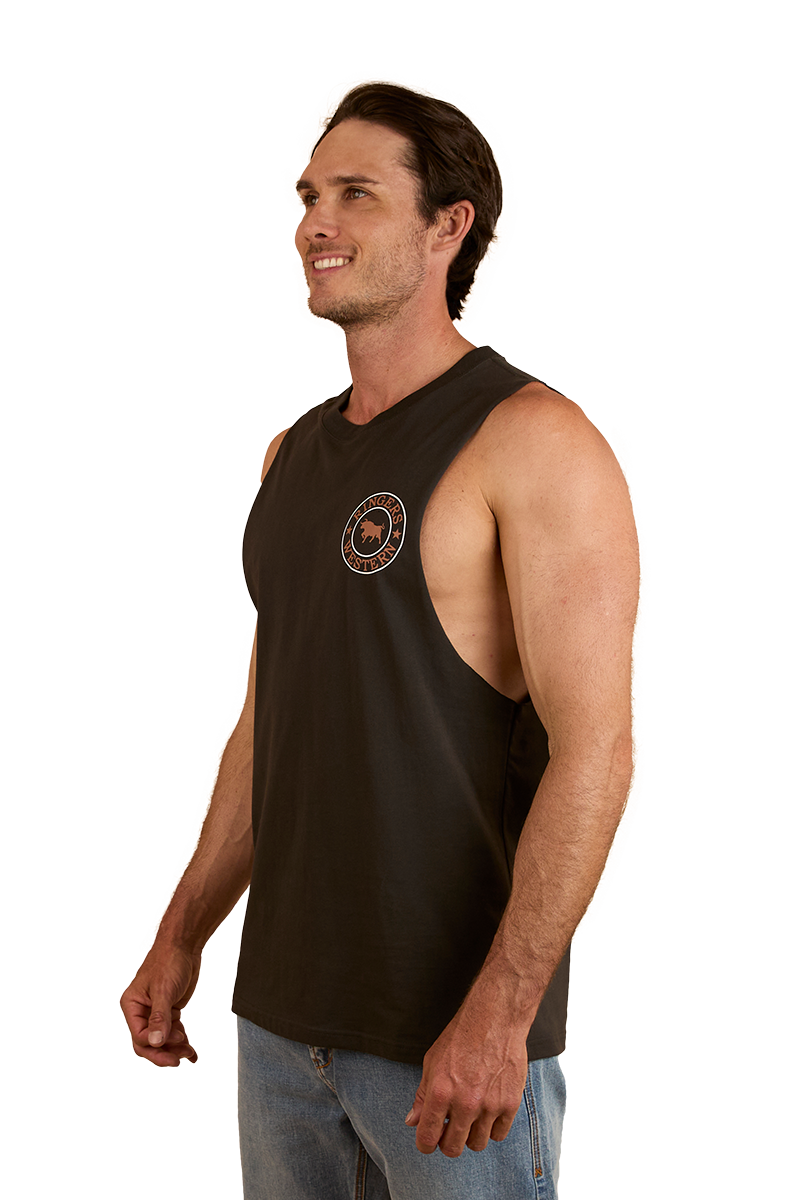 The same Signature Bull print you all know and love on a muscle tank. Designed for those who embrace everything country, this muscle tank combines strength and style in a way that's unmatched. Crafted from premium, soft and breathable fabric, this tank offers durability while keeping you cool under the hot Aussie sun. The raw edge adds a touch of ruggedness, perfect for our cowboys and cowgirls. If you are after comfort, this muscle tank definitely has you covered.