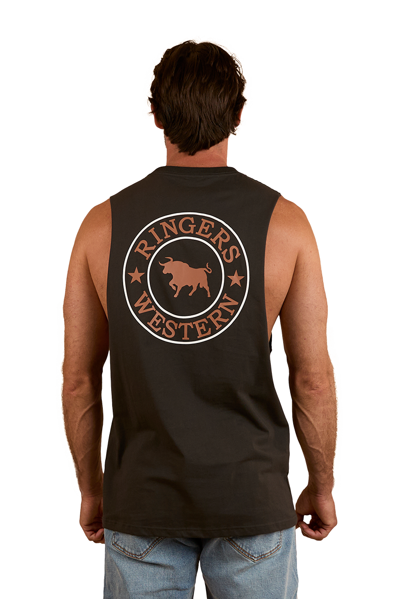 Ringers Western Mens Signature Bull Muscle Tank (117102002) Charcoal/Copper S