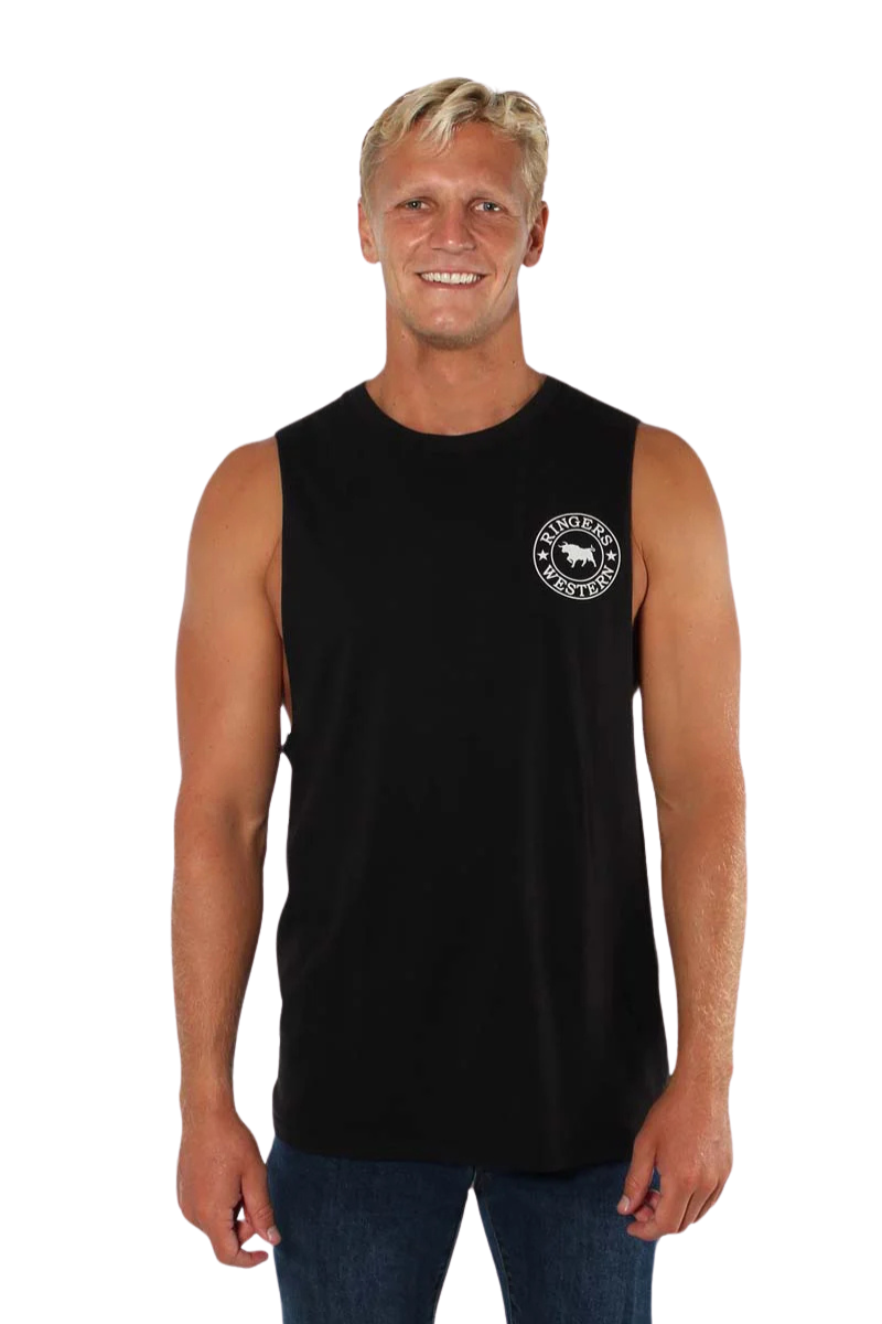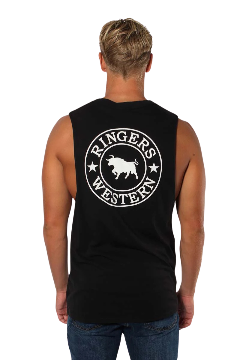 Ringers Western Mens Signature Bull Muscle Tank (120005RW) Black/White S