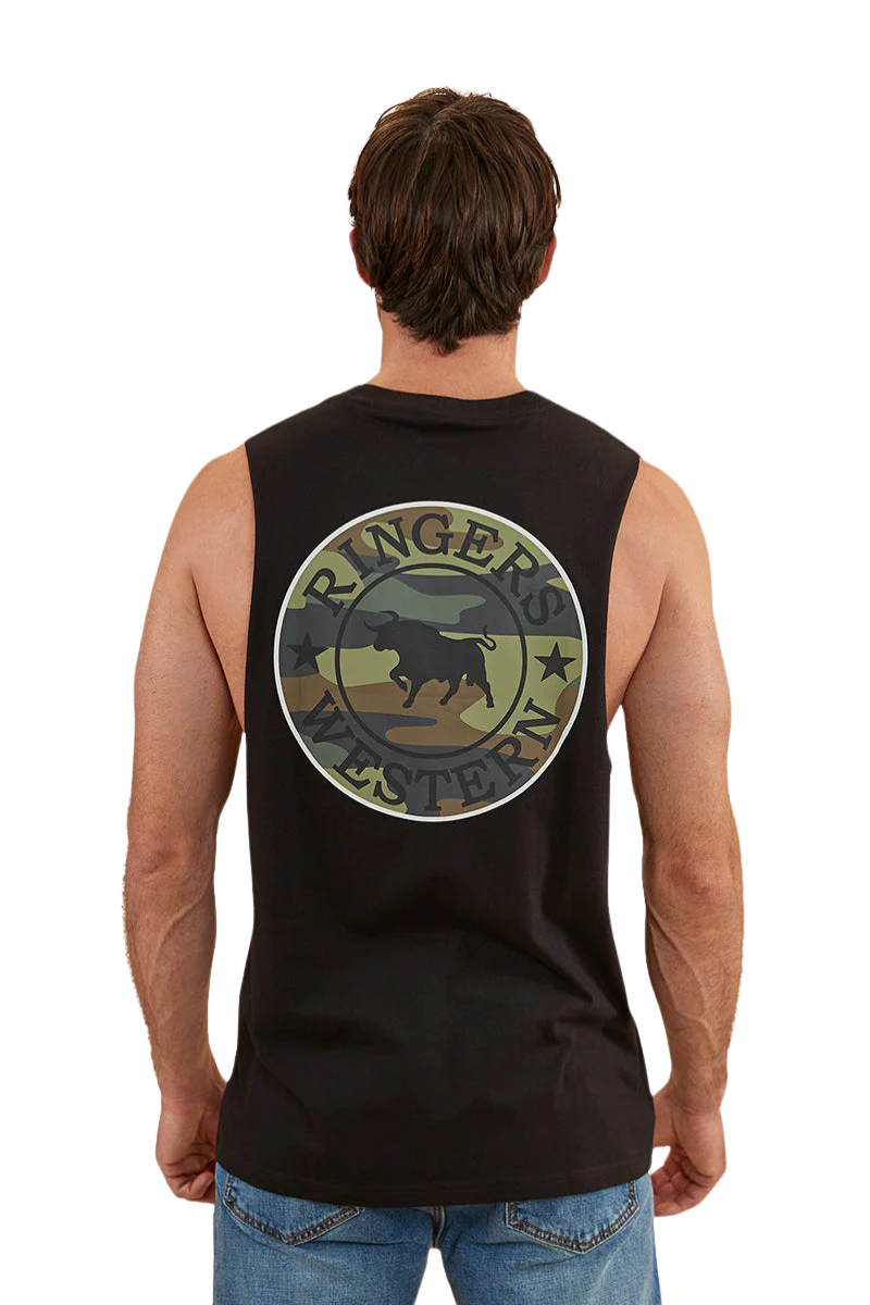 Ringers Western Mens Signature Bull Muscle Tank (120005RW) Black/Camo XL