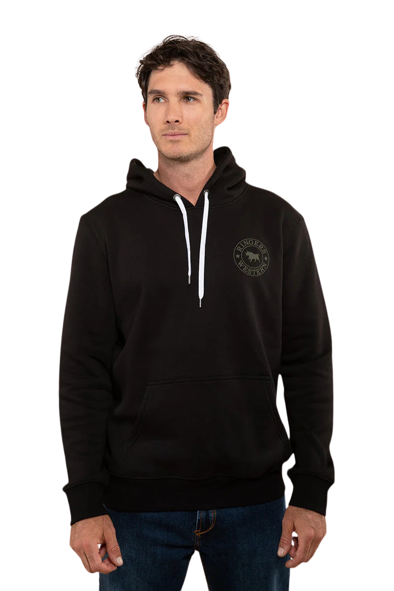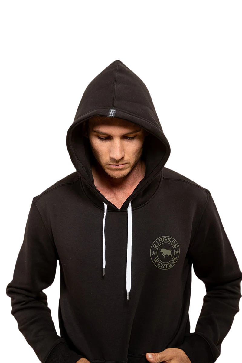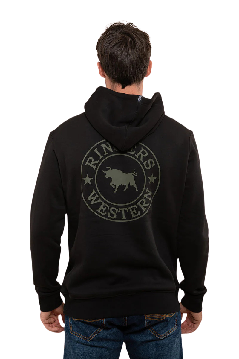 Ringers Western Mens Signature Bull Pullover Hoodie (123050RW) Black/Military Green S