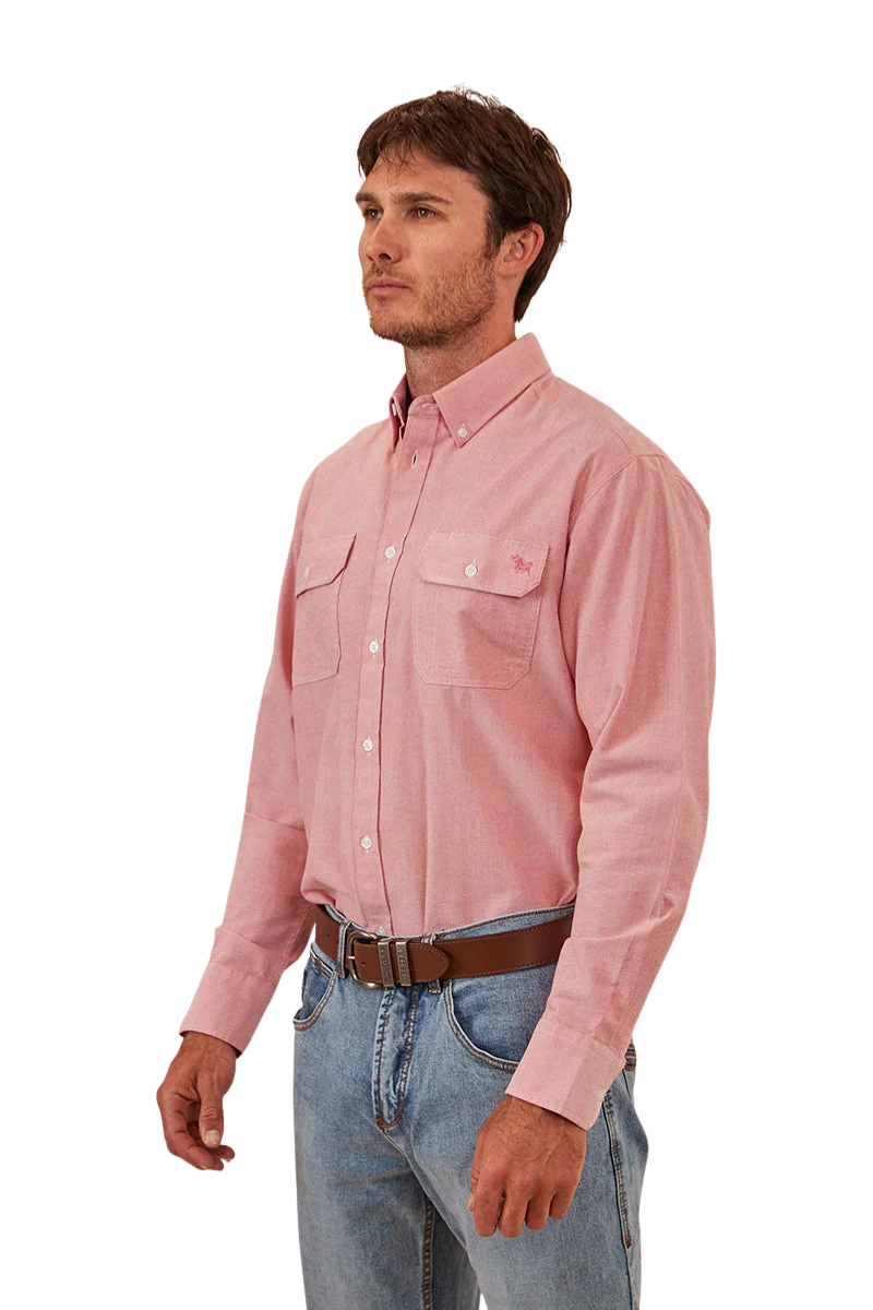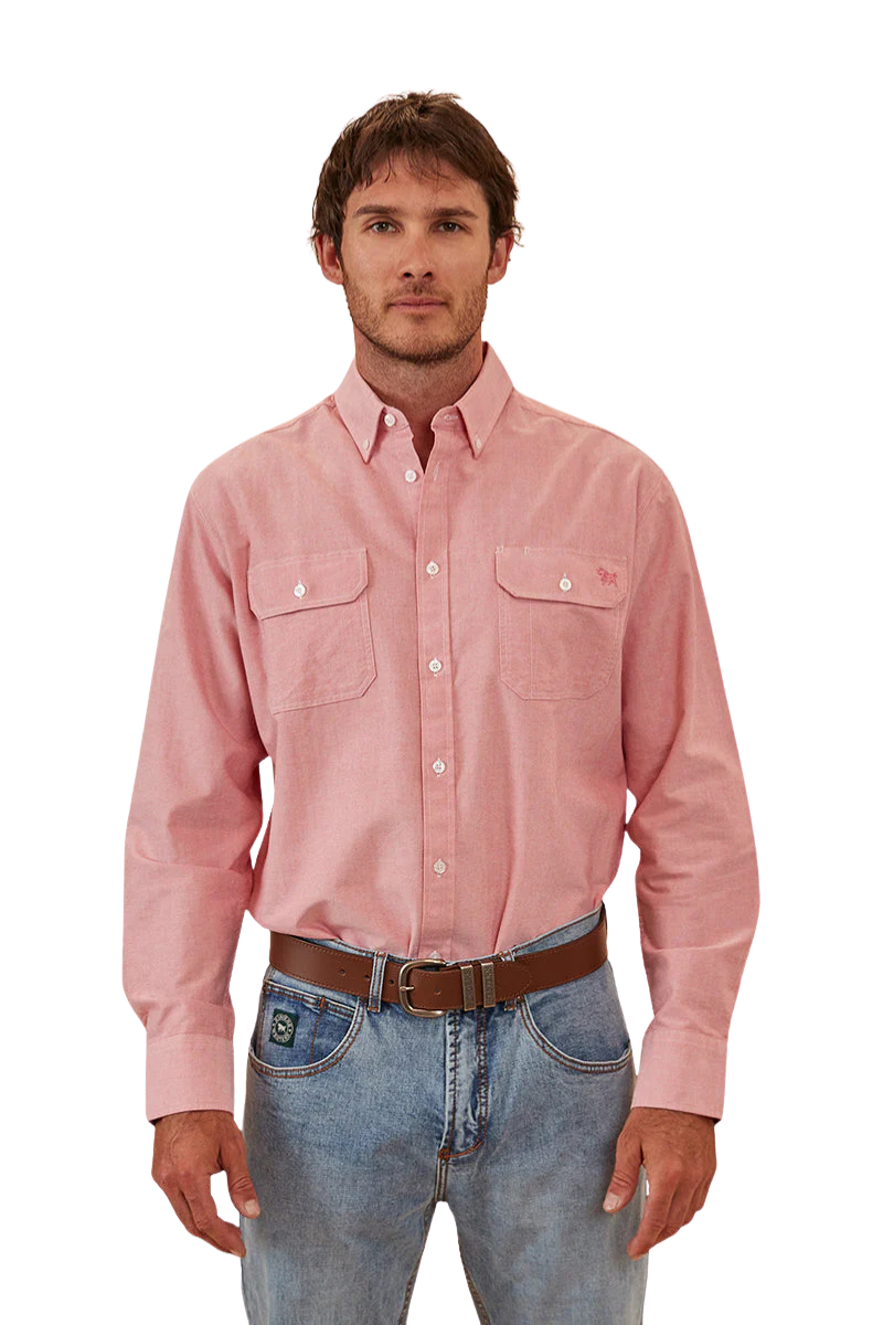 The Whyalla dress shirt is a semi-fitting style that closely follows your body shape without being too snug or restrictive. This dress shirt is made from 100% Oxford cotton which is a super soft and breathable material. It has a heavier and rougher weave than most traditional dress shirts but still offers the same durable nature, allowing you to remain comfortable throughout the whole day. This shirt features a classic centre front button closure, double chest pockets with pocket flaps for convenient storage of smaller items and an embroidered logo on the wearers left chest pocket.