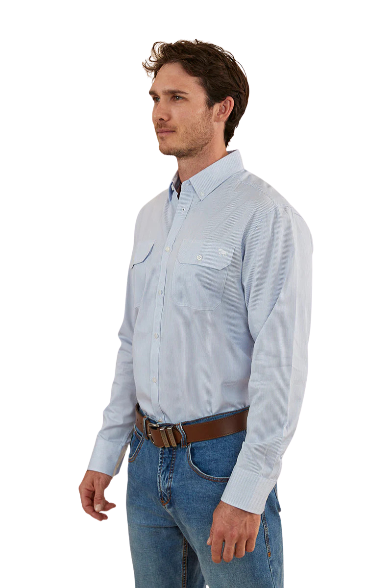 Ringers Western Mens Whyalla L/S Stripe Dress Shirt (123006RW) White/Blue XL [SD]