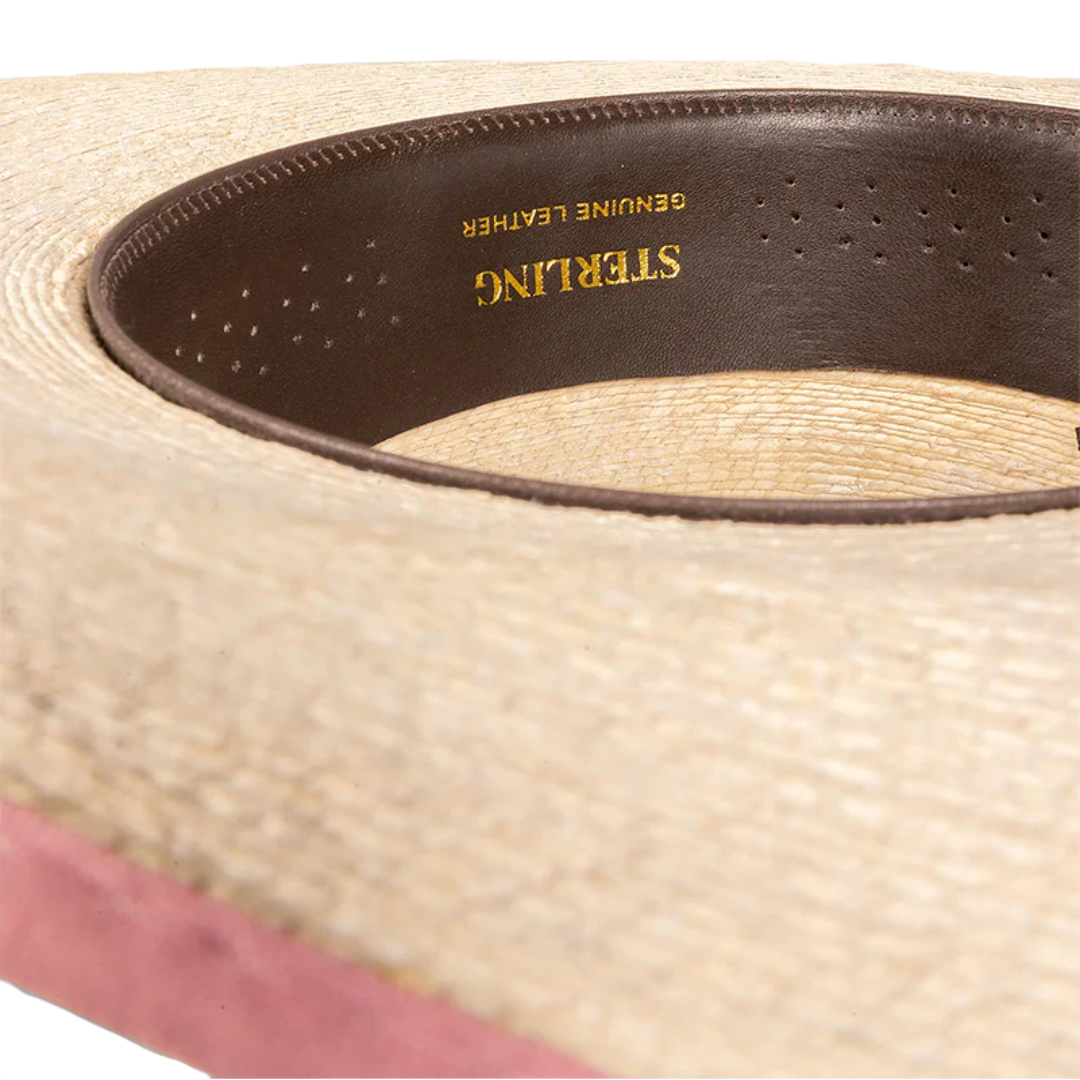 The Sterling is the perfect lid for those who want to embrace western style while staying cool in warm weather. The natural palm straw material used is crafted by meticulously weaving together palm leaves to create a sturdy and breathable base. This western hat features a leather internal sweatband and a ribbon hat band that encircles the base of the crown. The natural texture and unique appearance of palm straw hats add a rustic and authentic touch to any outfit.