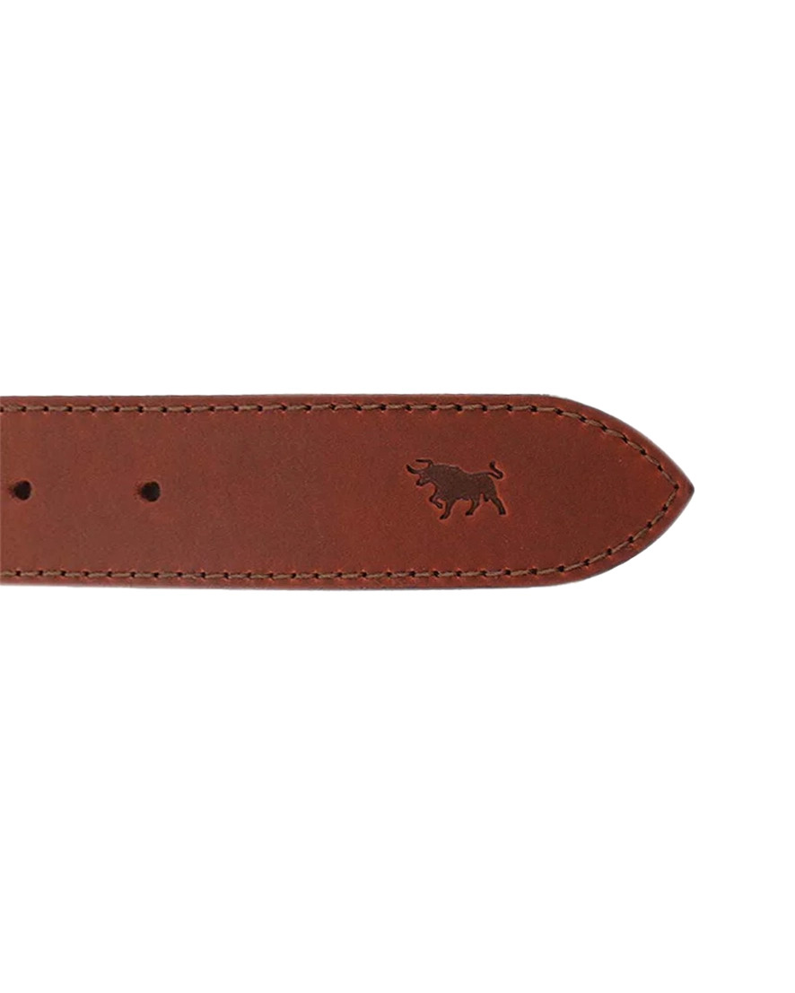 Made from mahogany brown leather and gold matte brass, the James in mahogany is the perfect corporate and dress belt. Featuring subtle embossed signature bull on the tail and intricate Ringers Western engraving for a luxurious finish.