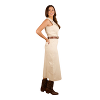 Crafted from 100% cotton denim, the Airlie Women's Denim Dress will keep you comfortable whilst looking on point. The denim used in this design has a more rigid feel than stretch denim, enabling the Airlie to hold its shape whilst allowing your body to breath - a must during the Aussie summer. Designed in a midi-length, this dress features a front hem split, allowing you to move freely in style. The Airlie dress features a convenient front zip closure, a secure and easy wearing garment that will keep you in good stead for all occasions. Standard belt loops allow you to style the Airlie with your favourite belt, highlighting your waist whilst accessorising with your own personal flair. Signature floral embroideries and western inspired style stitching are stand out features, harmoniously complemented by feature panel seams making the Airlie Denim Dress the perfect embodiment of country charm and elegance.