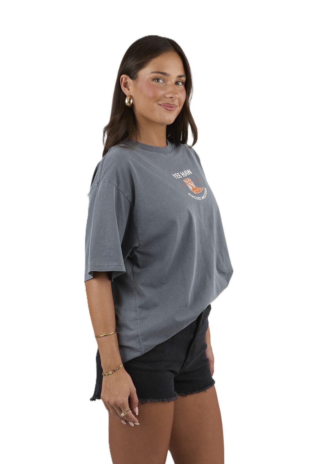 Crafted from premium 100% cotton jersey, this women’s western t-shirt delivers exceptional softness, breathability, and all-day comfort, making it perfect for year-round wear. The oversized fit creates a relaxed, modern silhouette that pairs effortlessly with your favourite Ringers Western denim, tights, or activewear for easy everyday styling.