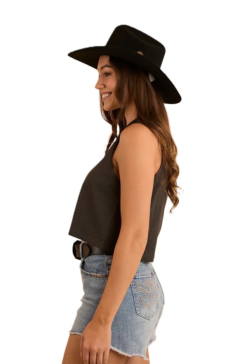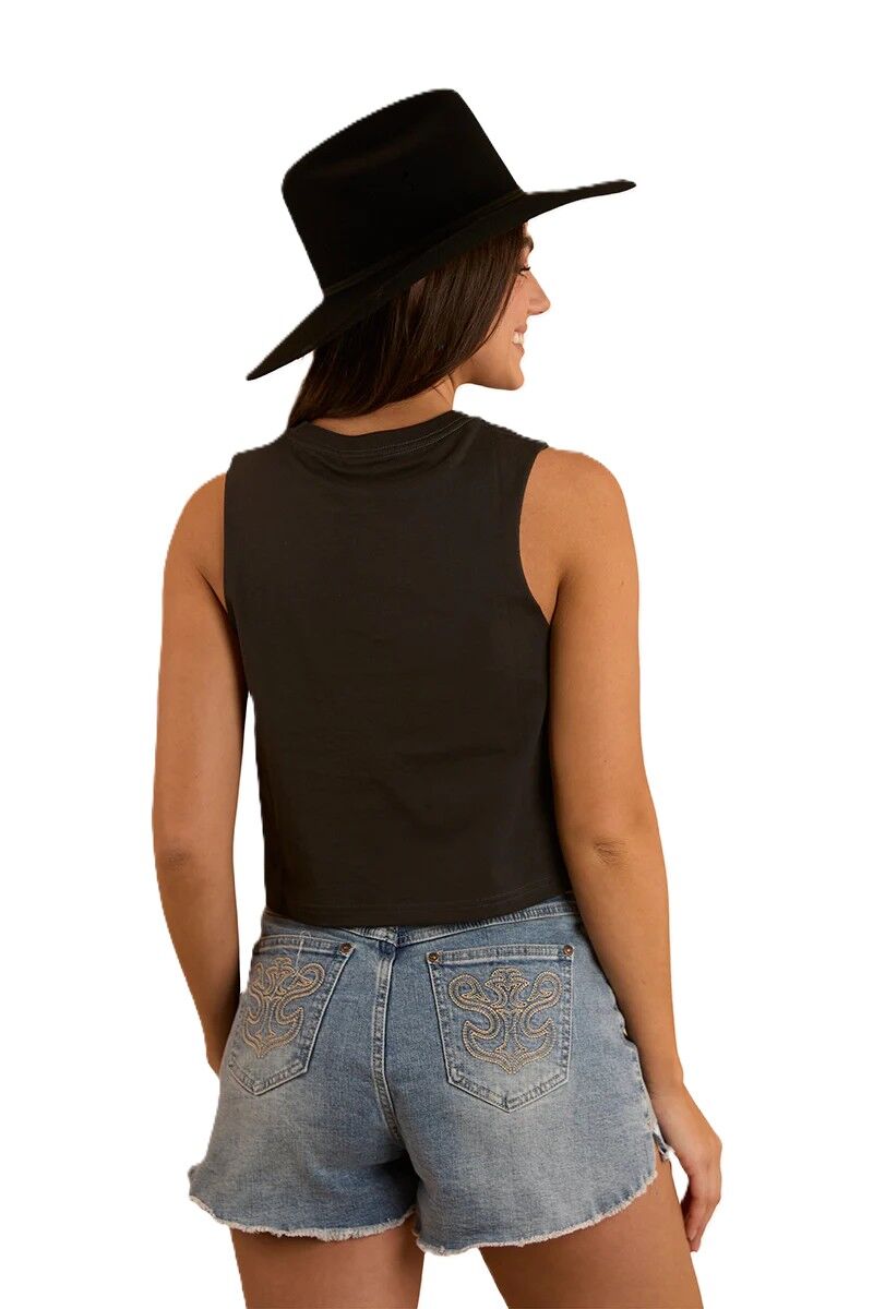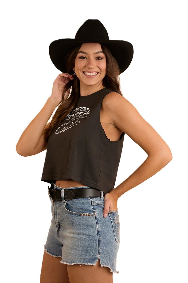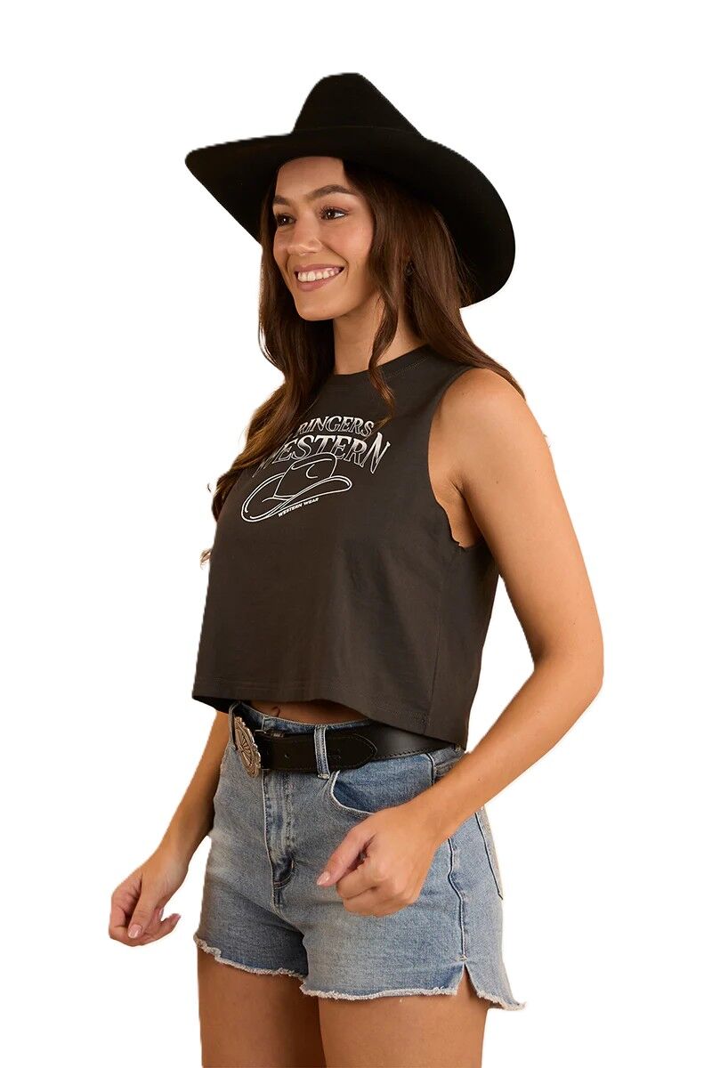 Ringers Western Womens Chasing Cowboys Crop Muscle Tank (224020RW) Charcoal 14 [SD]