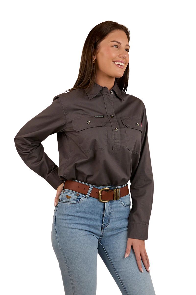 Introducing the Condora Women's Half Button Work Shirt, the ultimate blend of rugged durability and country style.
