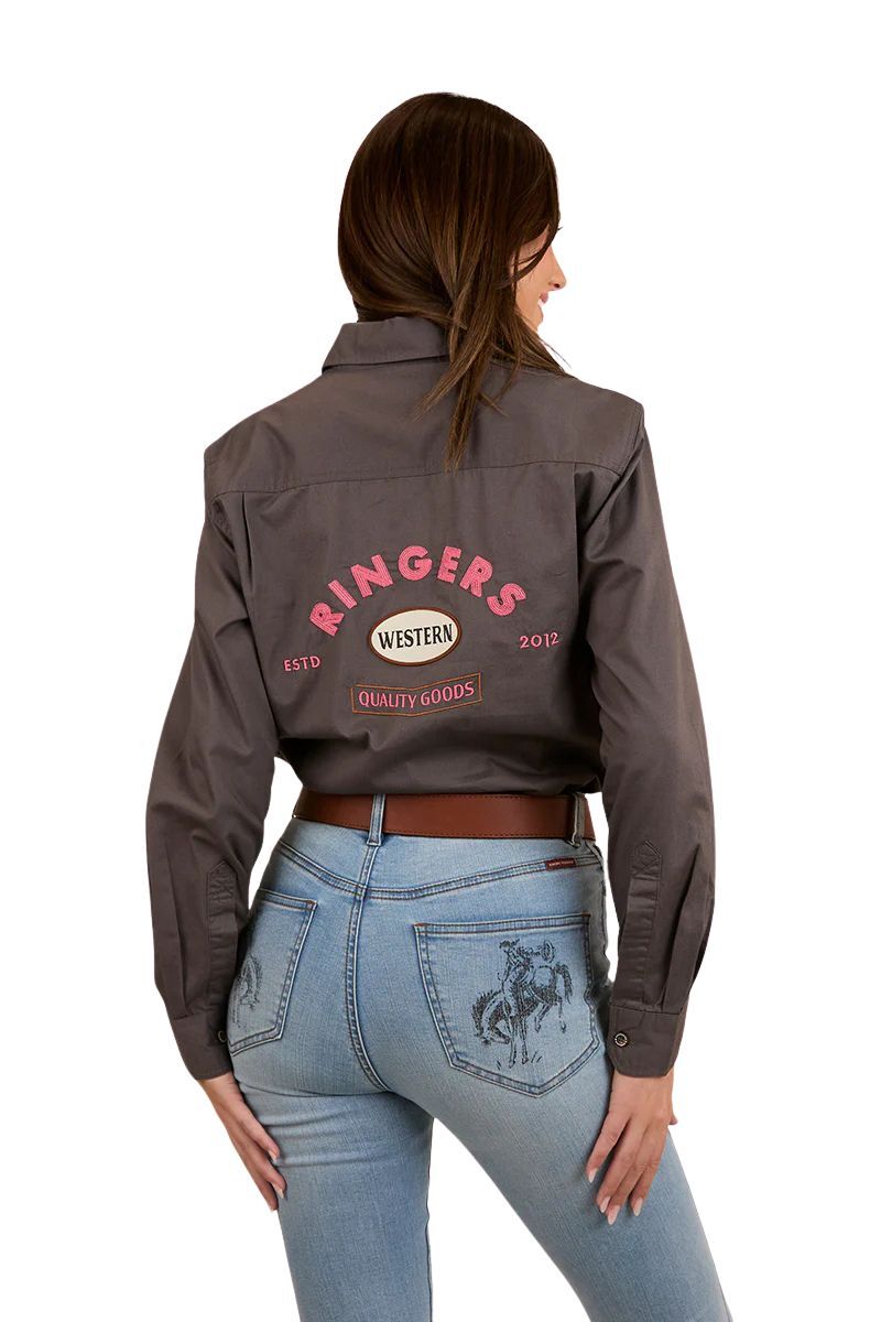 Created from 100% cotton, this hard working shirt offers unrivalled breathability whilst having an extremely soft feel against the skin. The loose fitting design provides freedom of movement, keeping you comfortable in all situations, while the UPF 50+ rating provides superior protection from the sun. The half button placket is easy wearing, tuck into your favourite jeans for a classic country outfit that will have you looking polished from dusk to dawn. Completed with a large Ringers Western feature embroidery in a pop of Pink, the Condora is a must-have in every cowgirl's collection.