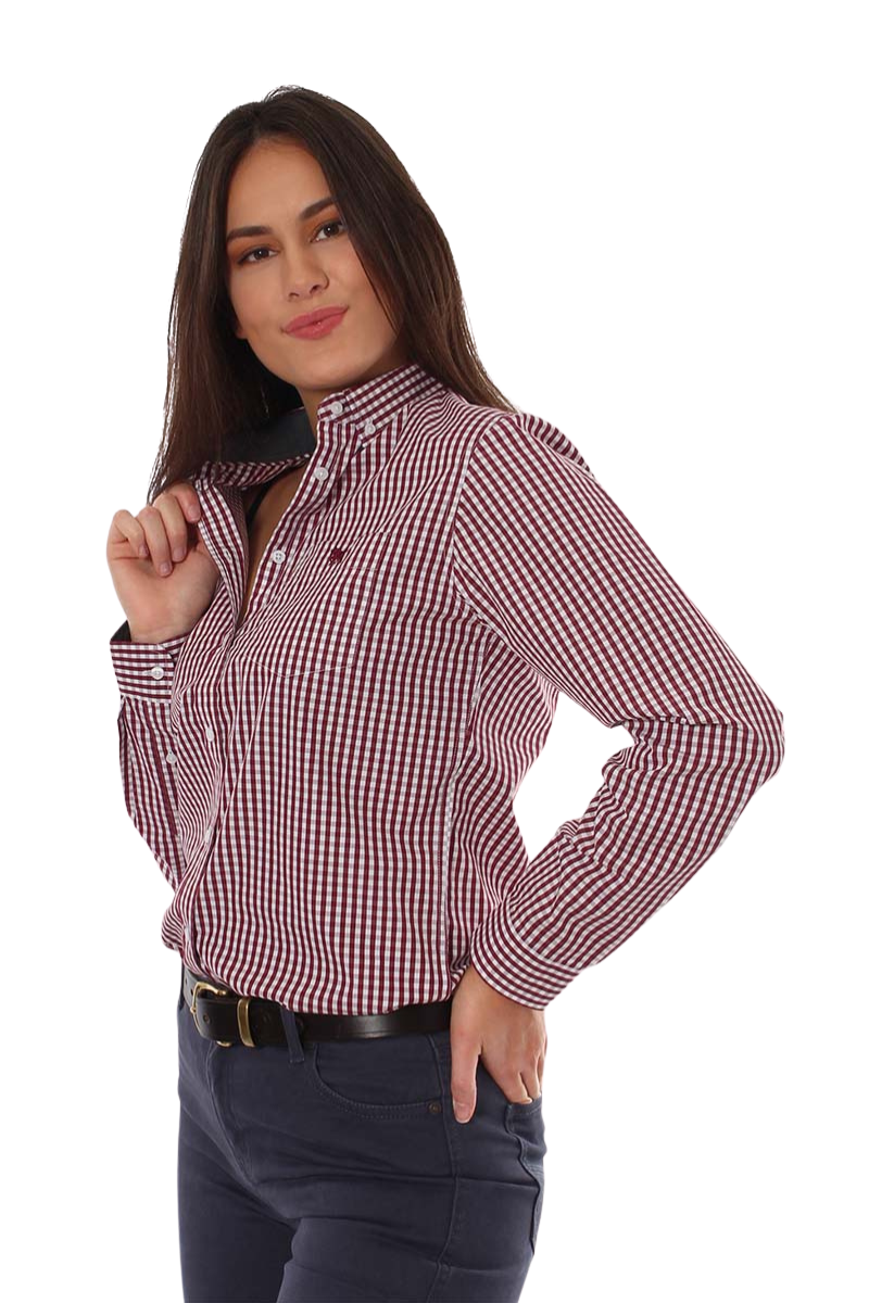 Ringers Western Womens Davidson Gingham Check L/S Dress Shirt (218109061) Burgundy 10 [SD]