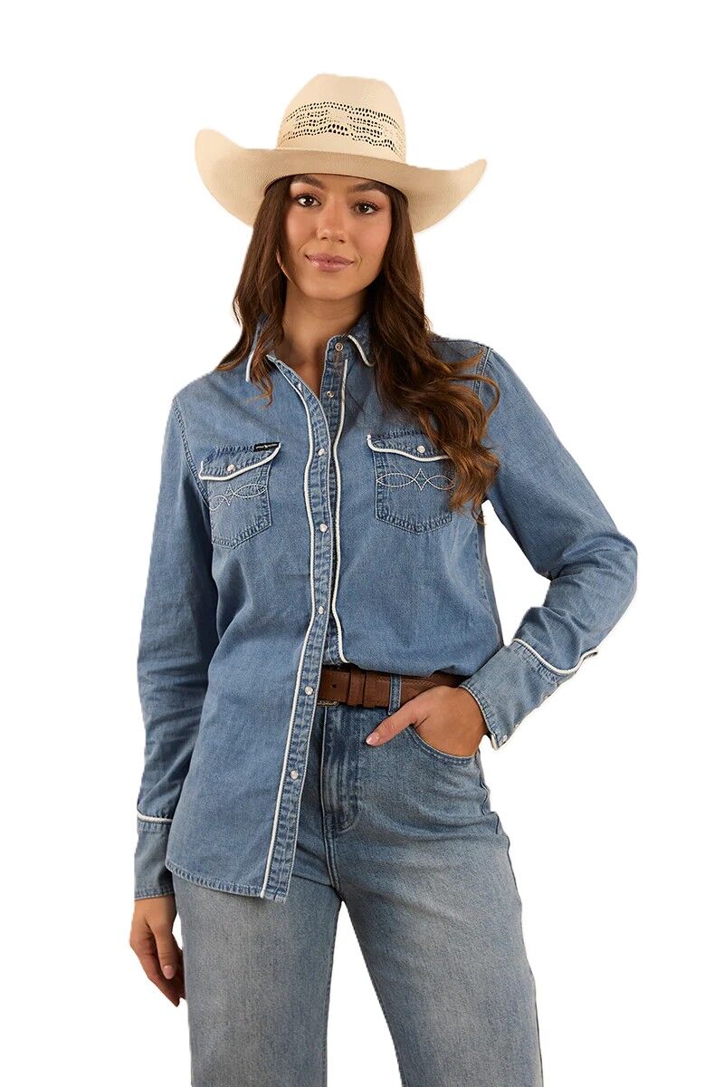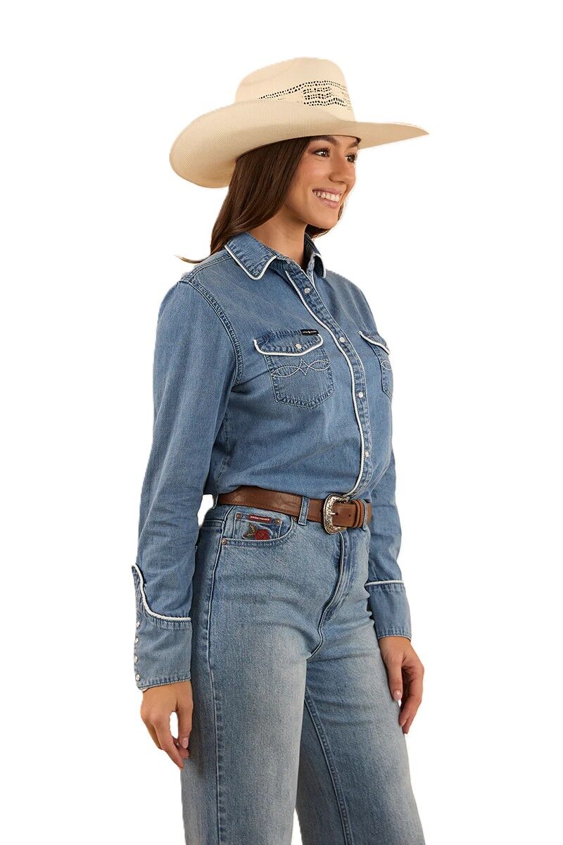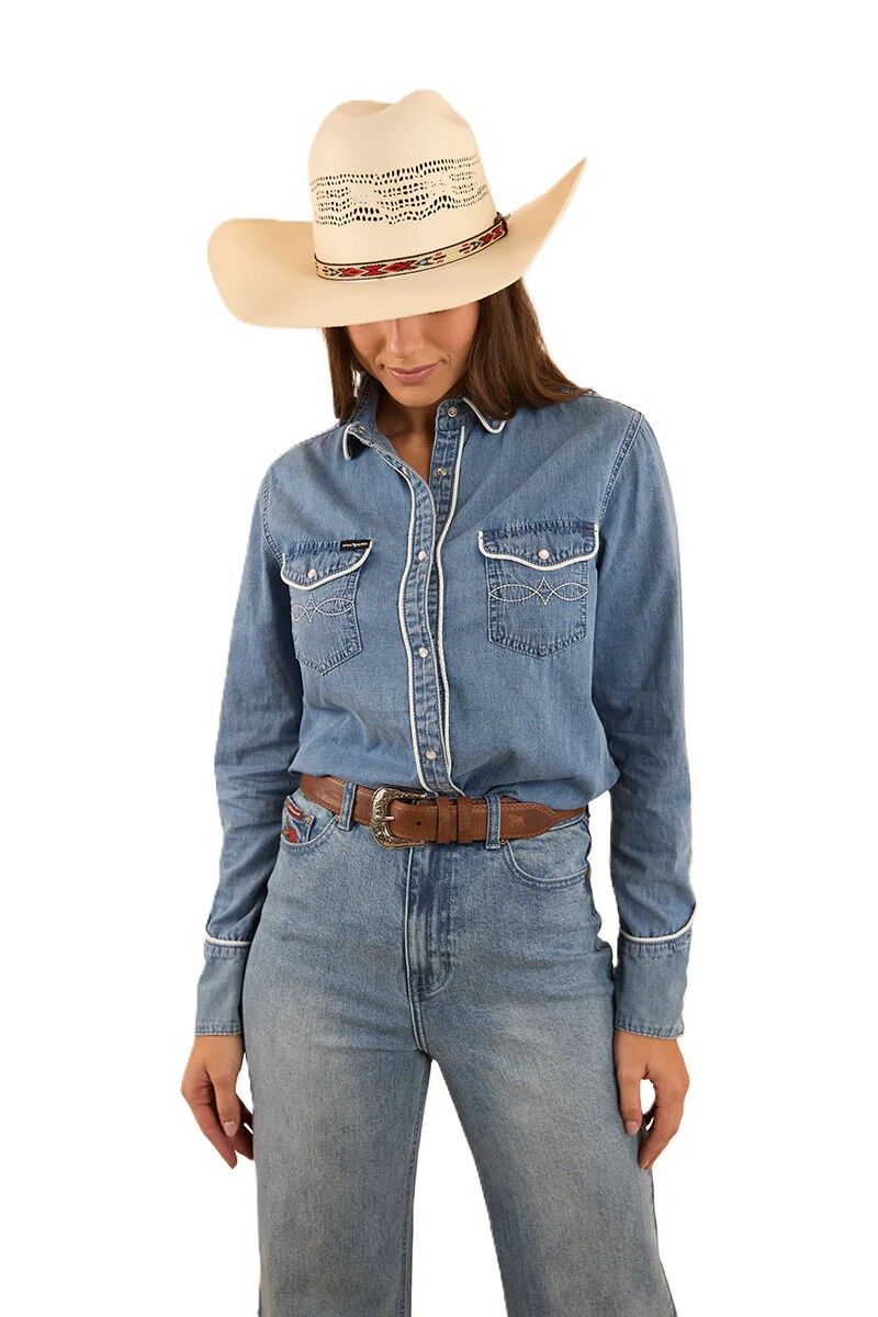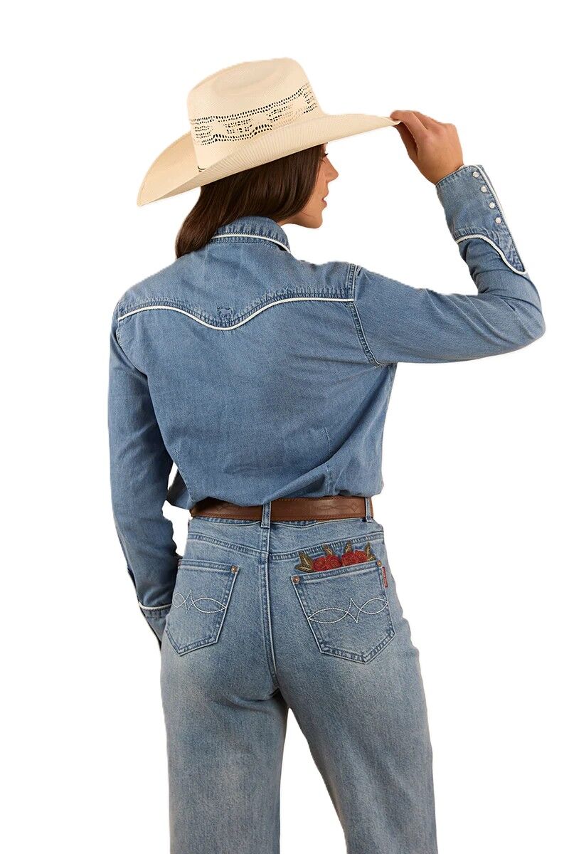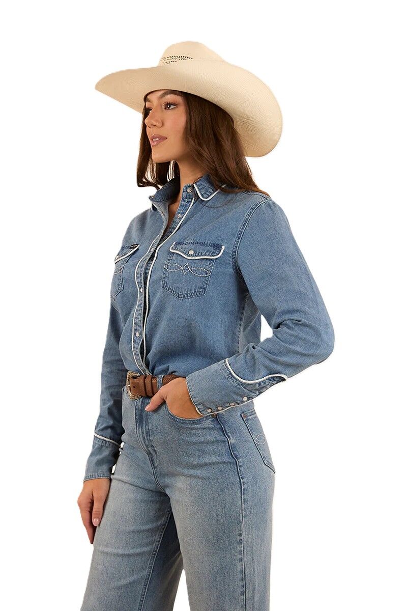Ringers Western Womens Eddie L/S Western Shirt (223116RW) Light Wash Blue [SD]