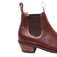 The Filly is a sleek update to our Kununurra boot, based on a traditional Chelsea boot with an added Cuban heel giving them a feminine profile for a great year-round style. Crafted from ultra-soft calfskin leather, constructed with a Goodyear-welt for durability, while the rubber sole provides an extremely comfortable footprint thanks to an inner cork filling that adapts to each foot. The full glove leather lining allows your feet to breathe and absorbs moisture, providing all-day comfort. The boot opening is slightly above ankle height with elasticated side panels making for an easy slip-on fit.