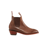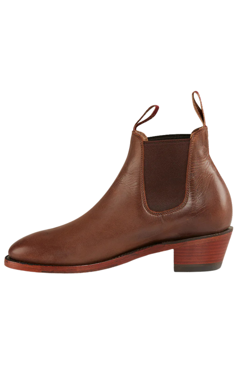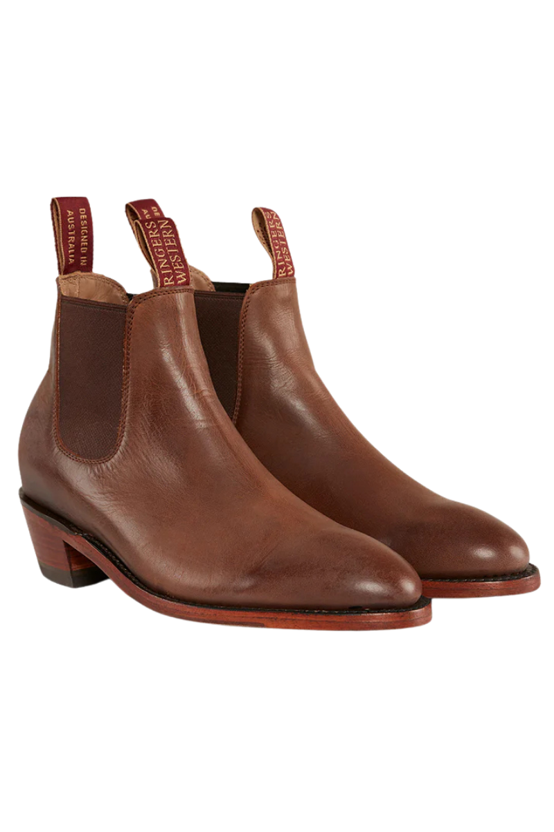 The Filly is a sleek update to Ringers Western Kununurra boot, based on a traditional Chelsea boot with an added Cuban heel giving them a feminine profile for a great year-round style. Constructed with a Goodyear welt for durability, the rubber sole provides an extremely comfortable footprint thanks to an inner cork filling that adapts to each foot. The full glove leather lining allows your feet to breathe and absorbs moisture, providing all-day comfort. The boot opening is slightly above ankle height with elasticated side panels making for an easy slip-on fit.