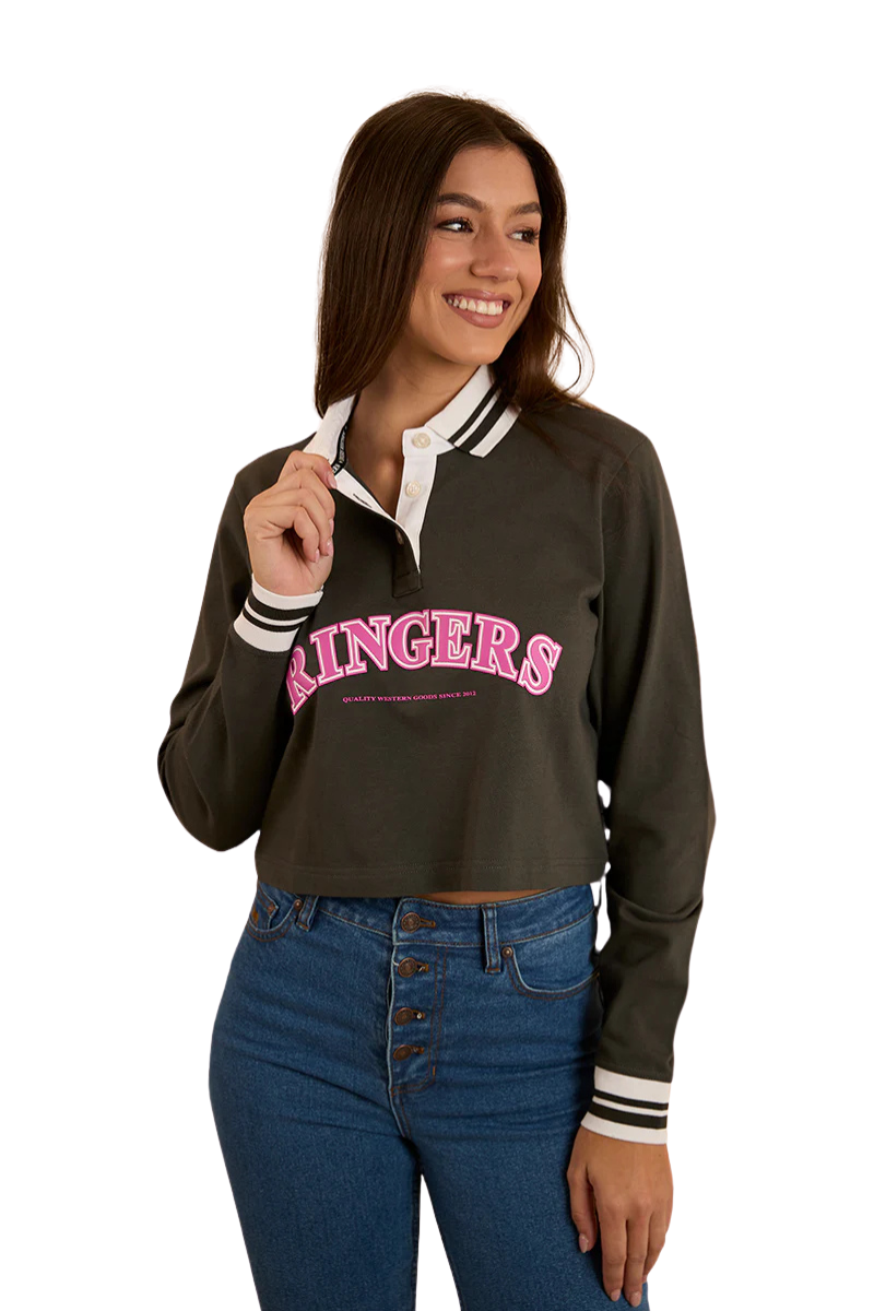 Ringers Western Womens Grace Cropped Rugby Jersey (224010RW) Charcoal 12 [SD]