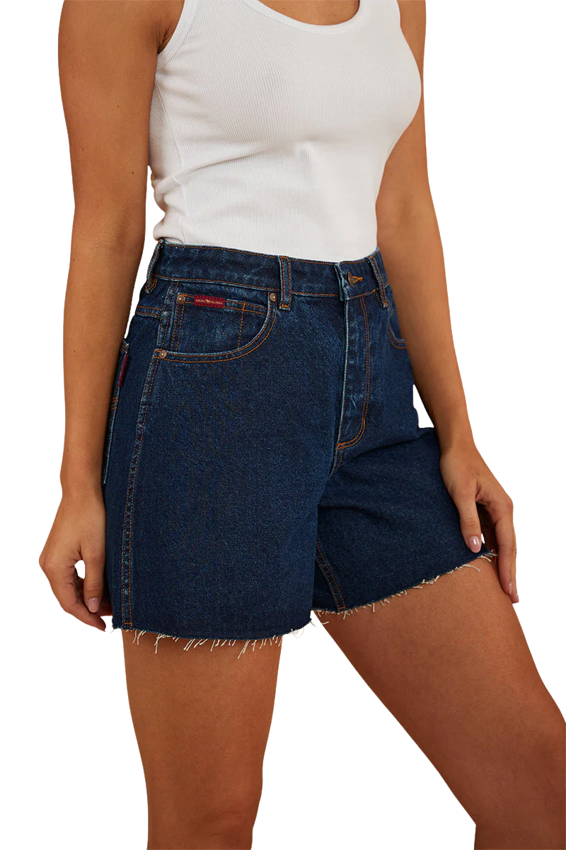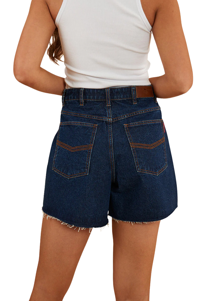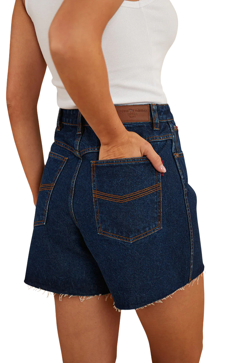 Nothing screams country music festival like a pair of denim shorts. The Remy denim shorts are a Summer essential, a true statement of elegance and Western flair. This denim short is made from 100% cotton and is rigid meaning it has that true stiff denim feel and is more structured than some of Ringers Western's other cotton-stretch denim shorts. The Remy shorts have their high-rise fit which is designed to rest comfortably above the belly button and neatly come in through the hip and seat providing that classic A-frame fit. Remy features a traditional five-pocket design and seven belt loops which will fit any standard-width belt.