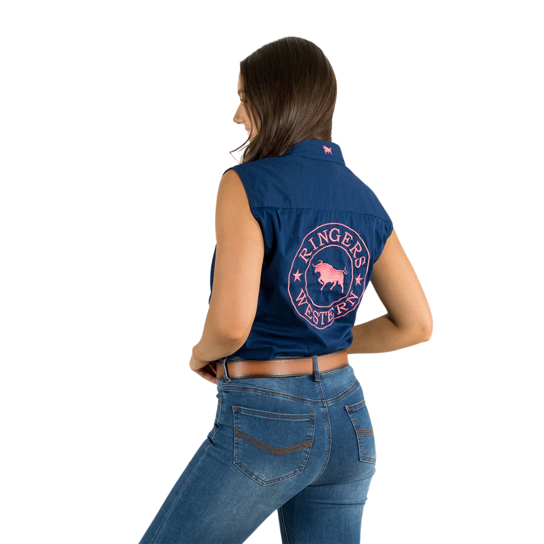 Ringers Western Womens Jillaroo Sleeveless Workshirt (220210991) Navy/Melon Embroidery 6