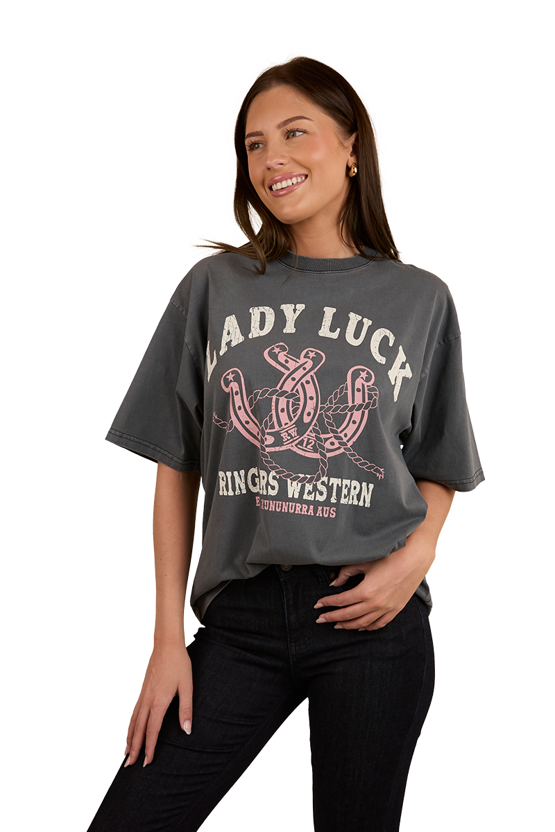 Ringers Western Womens Lady Luck Oversized S/S Tee (224068RW) Washed Black 6