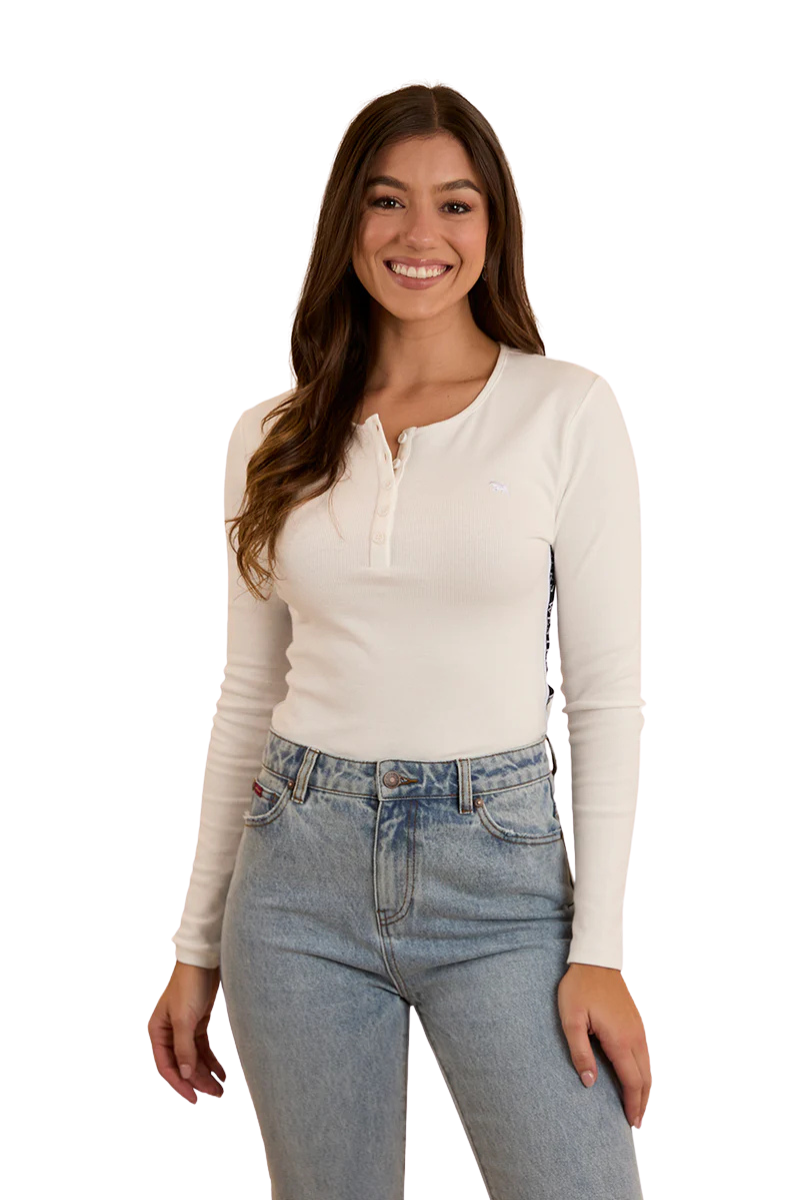 Introducing the Lalia, this versatile long sleeve top is set to be a wardrobe staple - especially as the seasons begin to change. Created from a cotton and elastane stretch blend, the Lalia is the ultimate in comfort. Sitting closely against the skin, this piece is perfect for layering in cooler weather and stylish enough to be worn alone with your favourite pair of Ringers jeans. The front of the Laila features a classic Henley button placket as well as an embroidered Signature Bull logo on the left chest, whilst branded side seams add some extra Ringers flair.