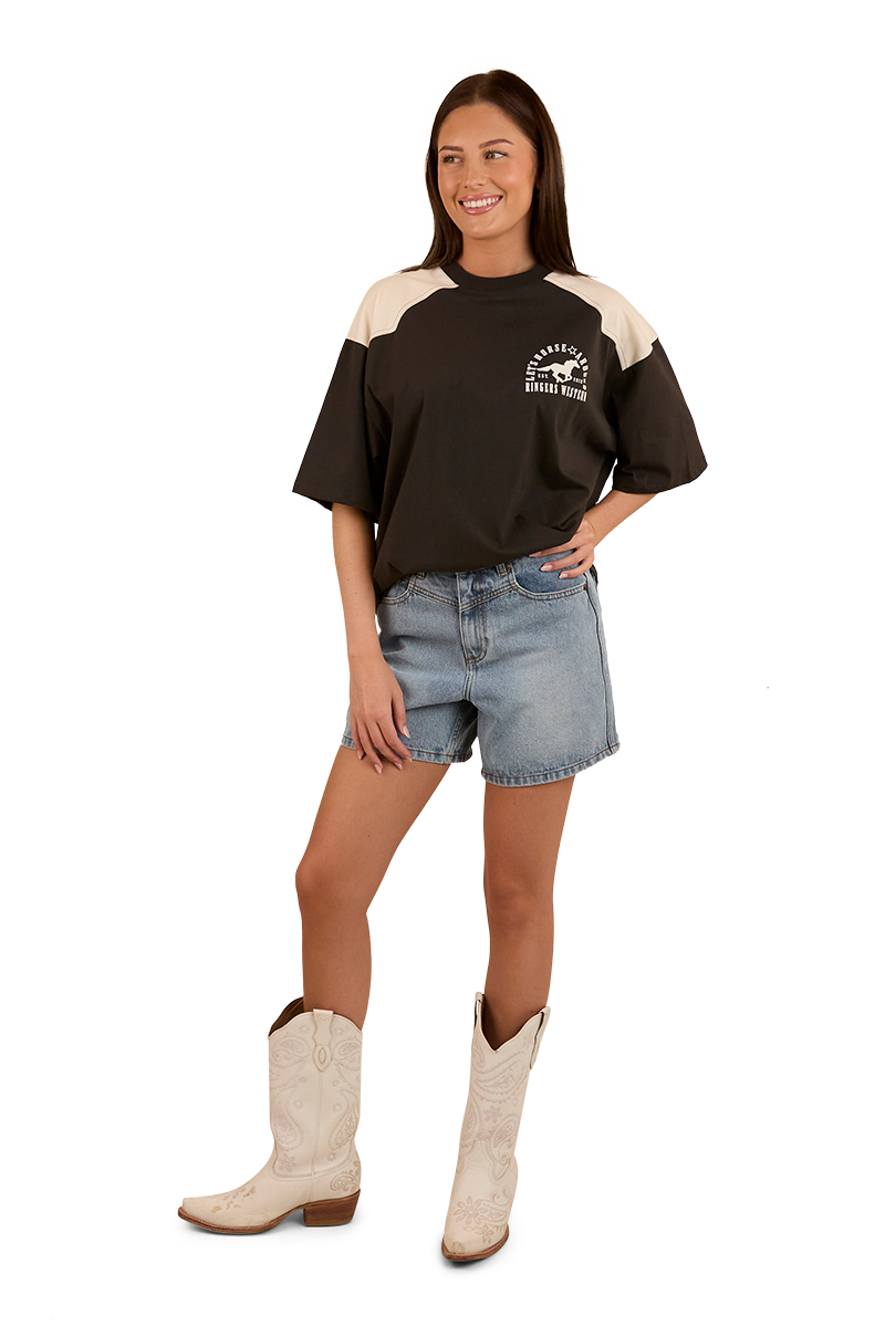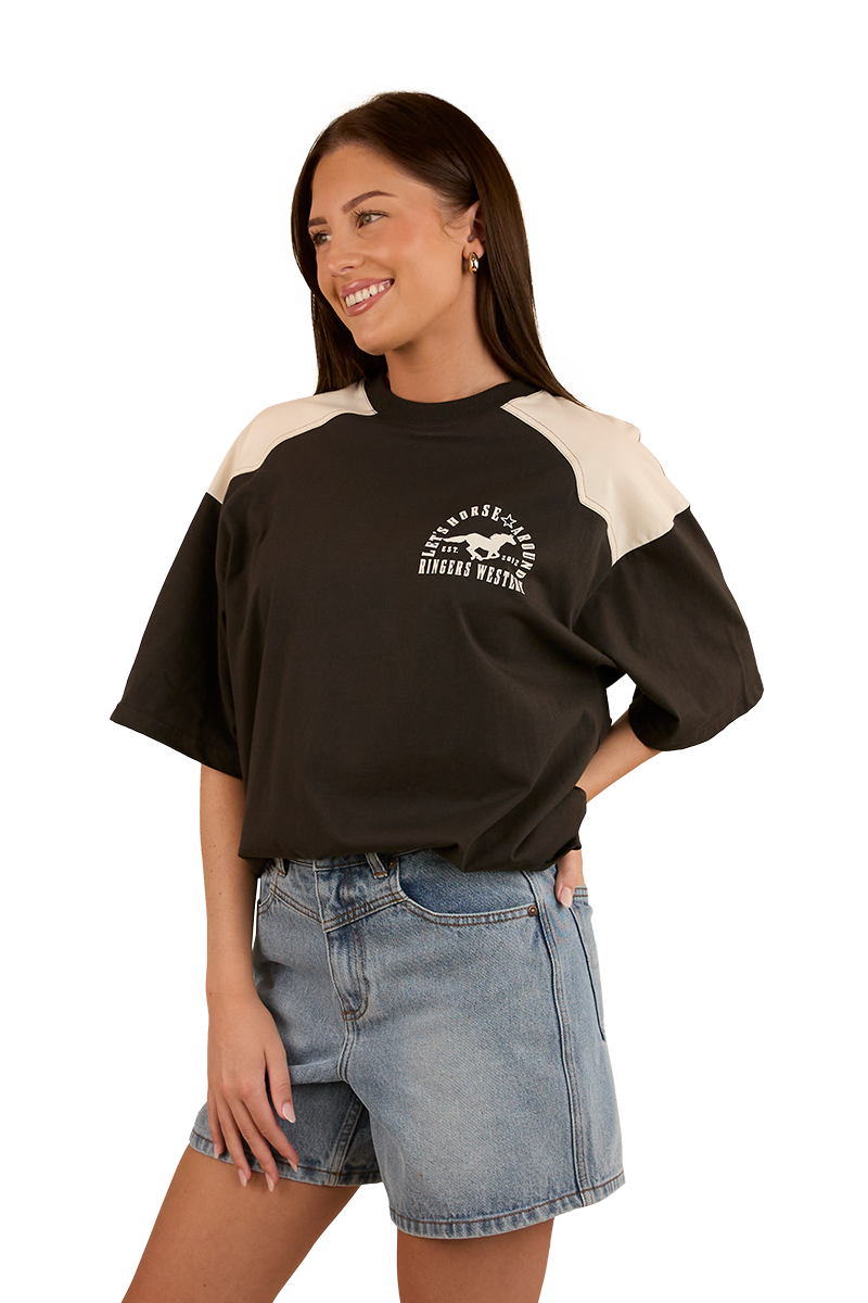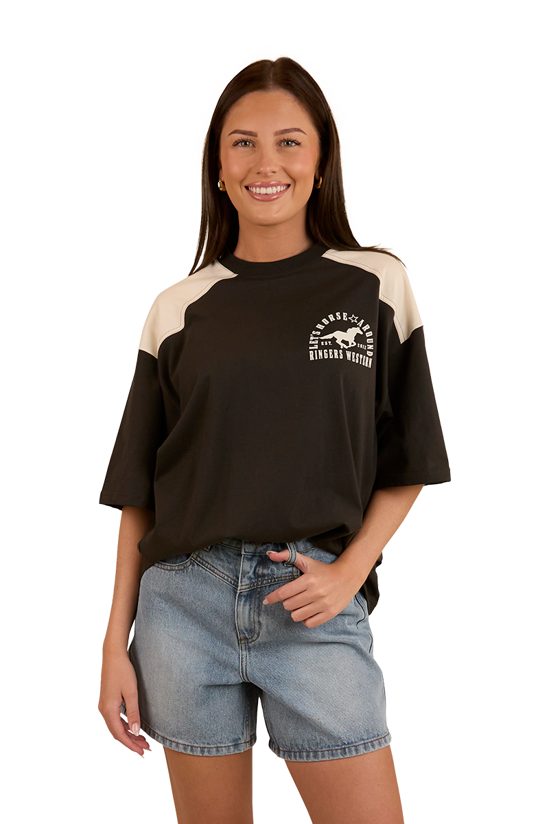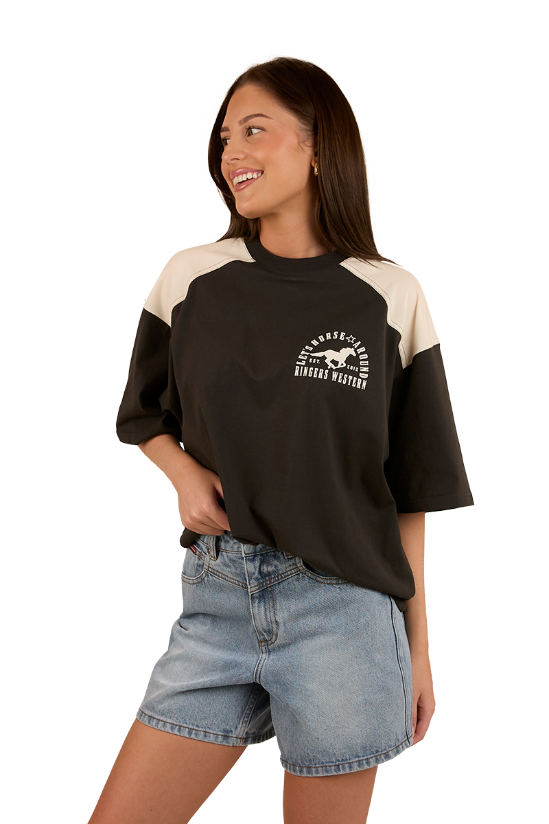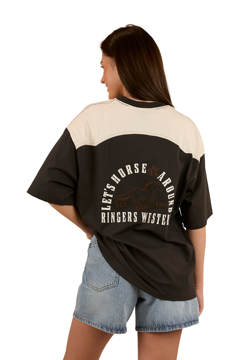 Ringers Western Womens Lets Horse Around Oversized S/S Tee (224070RW) Washed Black/Off White 12